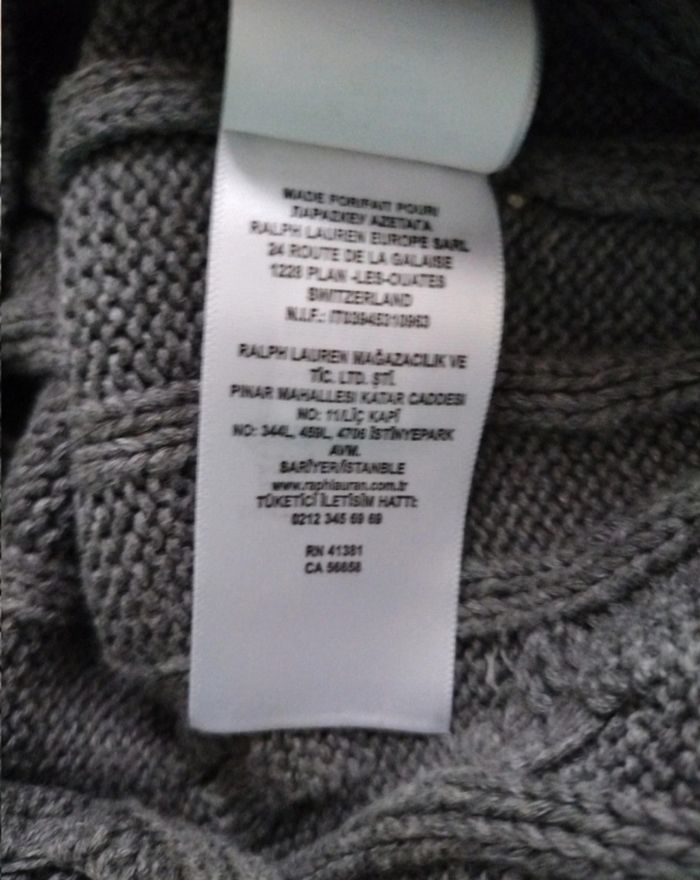 Pull homme ralph lauren. Maille torsadé. Couleur gris logo brodé bleu marine . Taille L 100% coton Envoi rapide et soigné