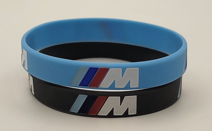 LOT DE 2 BRACELETS SILICONE LOGO BMW COLORIS GRIS ET BLEU CIEL ! NEUF !
