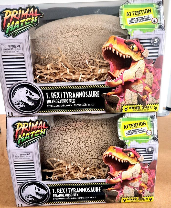 Lot de 2 oeufs a eclore, dinosaure, tyranosaure, trex Interactif PRIMAL HATCH DINO - Un dinosaure Jurassic World à faire éclore comme au temps du Jurassique ; Découvrez votre oeuf de dinosaure et faites-le éclore de façon très réaliste : magique, il éclot tout seul et le véritable dinosaure interactif sort de l'oeuf DINOSAURE JURASSIC WORLD INTERACTIF - Faites éclore, entraînez et jouez avec votre propre bébé dinosaure interactif féroce aux plus de 100 sons et réactions ainsi que des éléments articulés ; Un amusement sans fin pour les fans du monde jurassique FAITES ÉCLORE UN VRAI DINOSAURE - Tapez plusieurs fois sur l'œuf pour déclencher l'éclosion ; Regardez votre œuf de dinosaure se fissurer et s'ouvrir, tandis que votre ami reptilien émerge à travers la bave pour une expérience passionnante et réaliste ENTRAÎNEZ-LE - C'est vous qui décidez si votre dinosaure deviendra un T-Rex amical ou un prédateur féroce ; Utilisez votre cliqueur pour attirer son attention et le nourrir, le caresser ou le faire sursauter pour décider s'il sera un ami ou un ennemi TANT DE FAÇONS DE JOUER - Utilisez les 2 accessoires pour interagir avec votre Dinosaure et jouer à toutes sortes de jeux avec votre nouvel ami ; Plus de 100 sons et interactions ainsi que des effets lumineux ; Fonctionne avec 3 piles LR6 incluses JOUET ENFANT 5 ANS ET + - Le Primal Hatch Dino Eclosion Secrète Jurassic World convient aux enfants de 5 ans et + ; Les enfants adoreront apprivoiser et interagir avec leur dinosaure Jurassic World ; jouet enfant facile à prendre en main CADEAU ENFANT - Pour un anniversaire ou Noël, offrez Primal Hatch Dino Eclosion Secrète Jurassic World à votre enfant ; faîtes redécouvrir à vos enfants l'univers de la série et du film de science-fiction Jurassic World pour des heures de jeu formidables #dinosaure #interactif #primalhatch #jurassicworld #jurassic #thyranosaure #tyranosaure #electronique