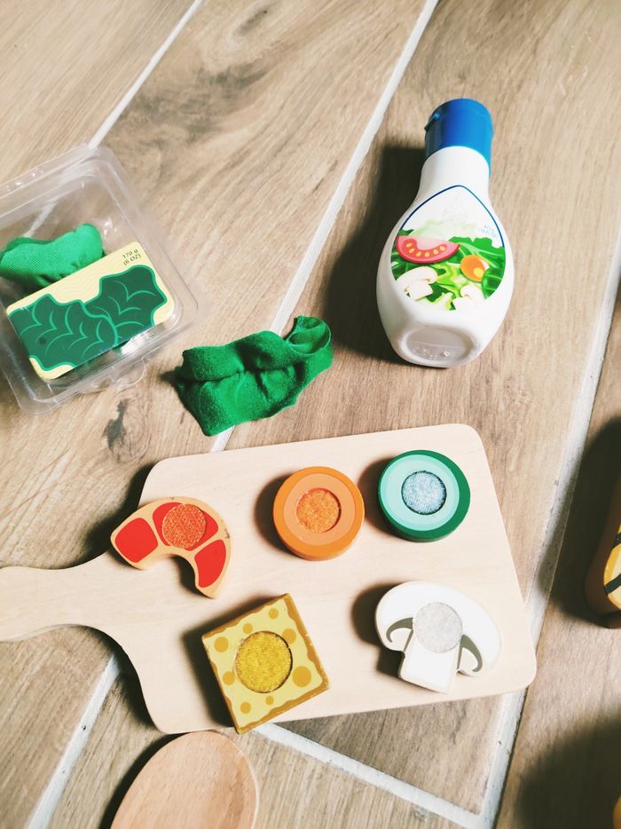 🥬Dinette - jeu d'imitation Salade en feutrine et différents aliments en bois marque Melissa et Doug JB1922