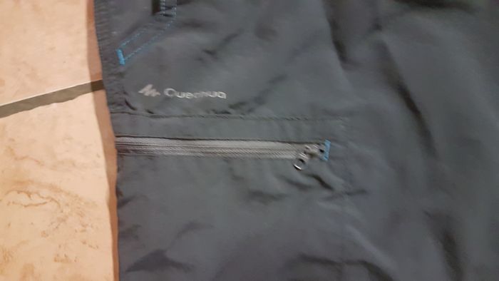 Short homme Taille 54 Couleur kaki 2 poches hautes et une poche zippée sur un côté du short Fermeture éclair et bouton pression Marque Oxylane