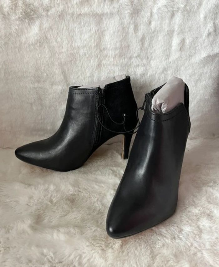Bottines noires en cuir et daim talons 9 cm pointure 37 - photo numéro 2