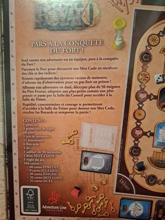 Seul ou en équipe, partez à la conquête du Fort ! Réussissez les épreuves pour collecter les clés et les indices ! De 2 à 6 joueur. Dès 8 ans