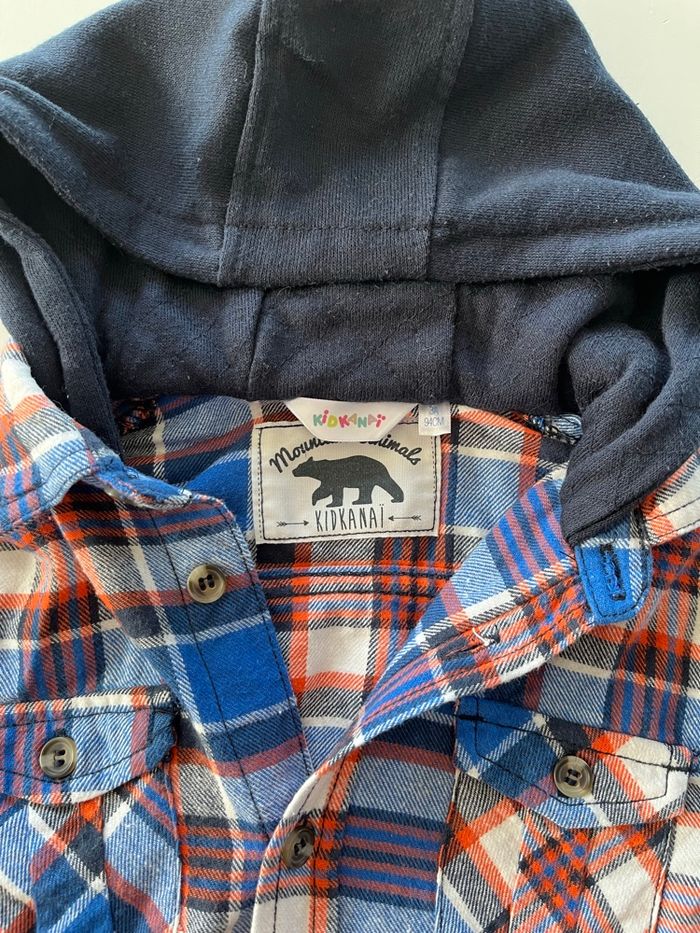 Chemise d’hiver à carreaux bleu/orange 3ans