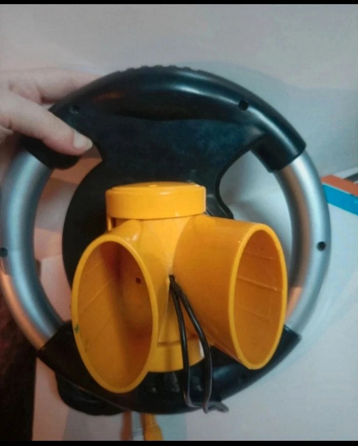 Volant de jeu "Plug and Play" (prêt à jouer) à brancher directement sur la télévision. Idéal pour les enfants, il contient environ 30 jeux de course et d'arcade directement intégrés dans le volant. Il suffit de brancher les câbles A/V (jaune, blanc, rouge) sur votre TV et de jouer !