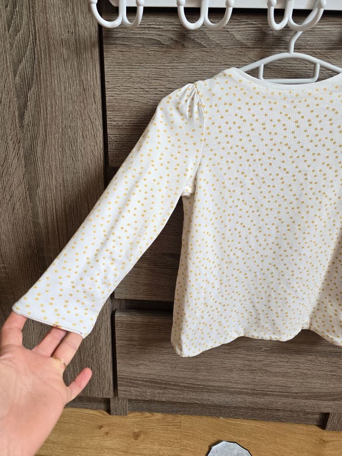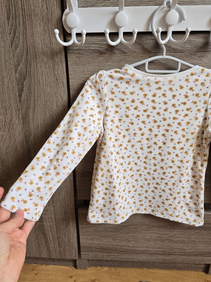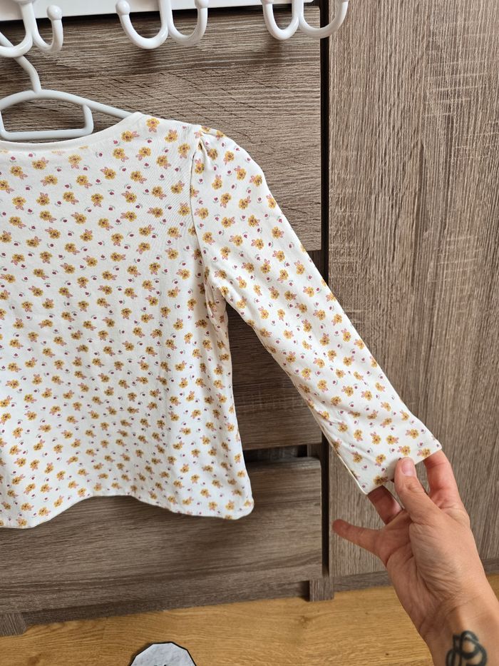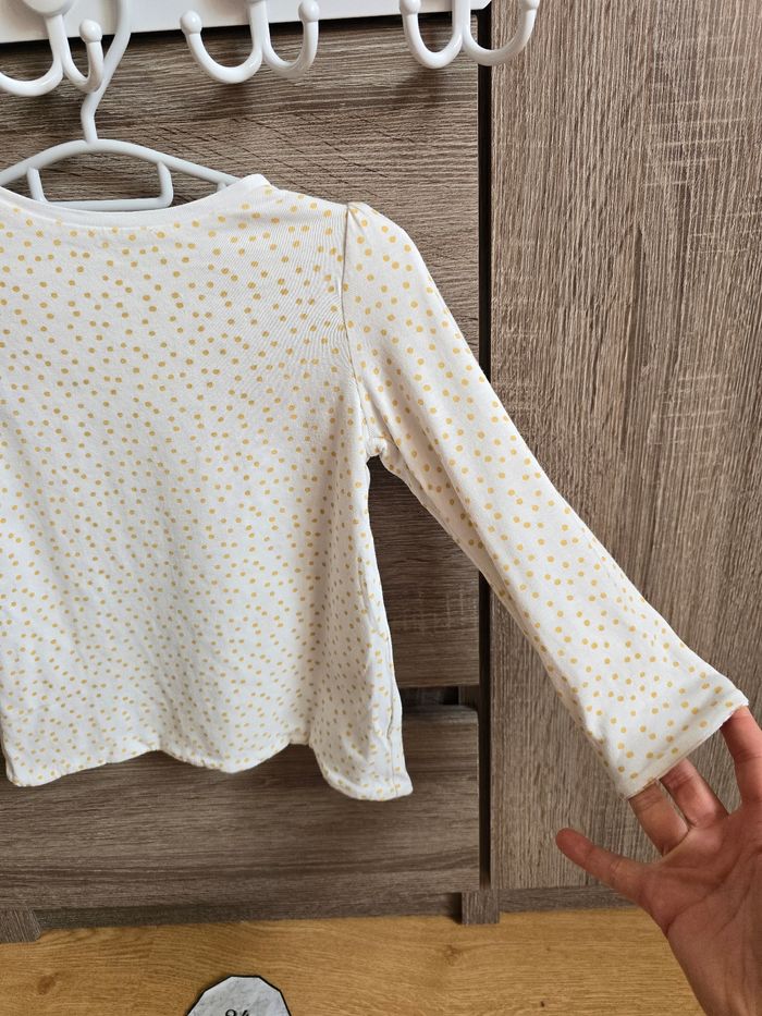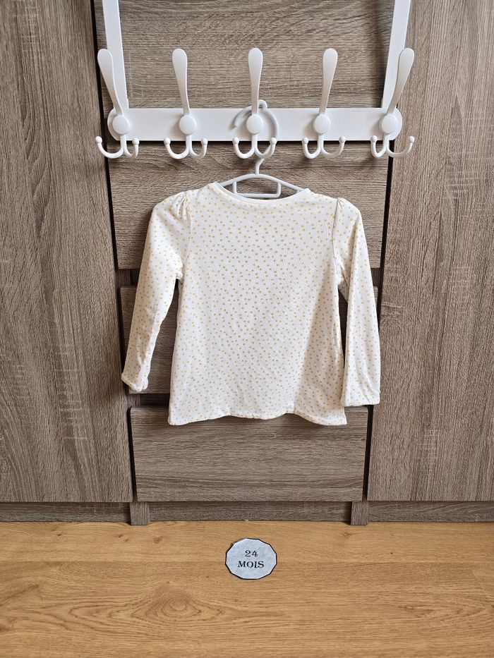 📜 T-shirt manches longues réversible, une face fleurie jaune et une face avec des points jaunes