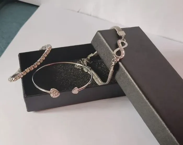 🎁 Idée cadeau à petit prix pour briller sans exploser le budget ! 💎 Ensemble neuf de 3 bracelets argentés :