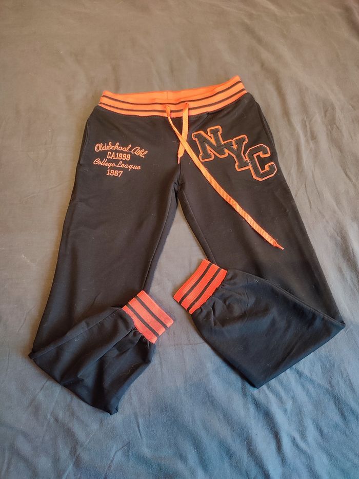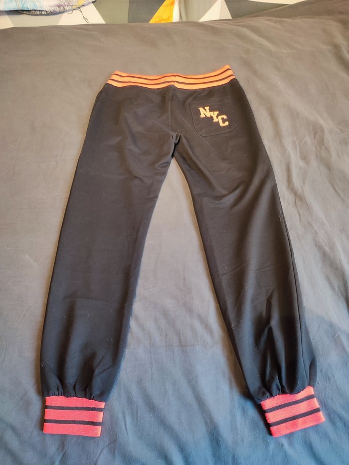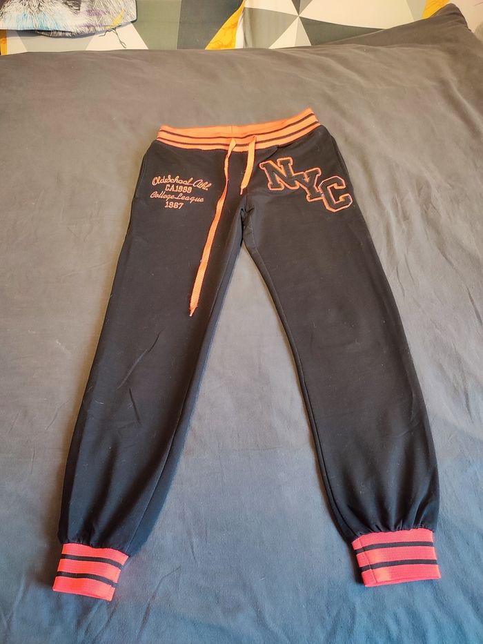 Jogging NYC noir et corail flashy, porté une seule fois il est en parfait état. Taille 38 Taille élastique
