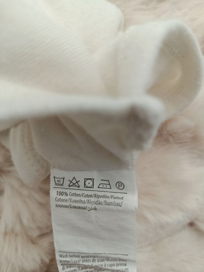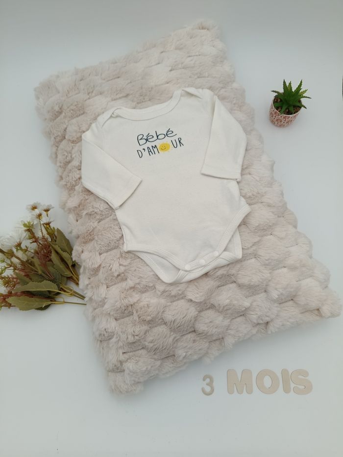 - Manches longues - Fermeture entre les jambes - Couleur blanc - Ecriture noire " bebe d amour" - Aucune tâche ni trou
