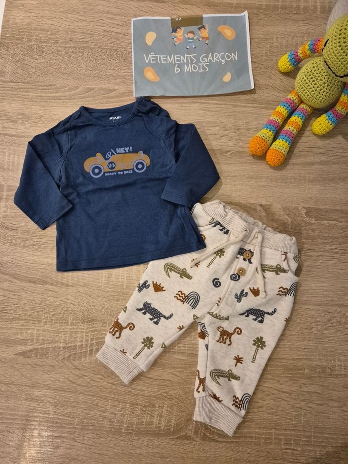 Ensemble 2 pièces pour bébé Comprenant : jogging TAO et tee-shirt KIABI Taille : 6 mois En très bon état Lavé et stocké dans caisse plastique Maman soigneuse et envoi rapide N'hésitez pas à consulter mon dressing, faire des lots ou me contacter 😉