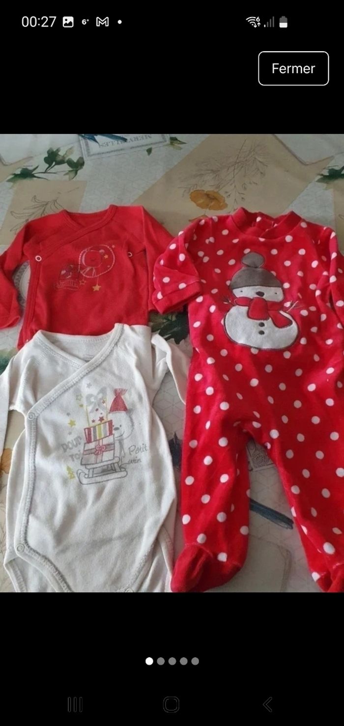 Lot composé d un pyjama, et de 2 bodies Noël. Taille 3 mois.