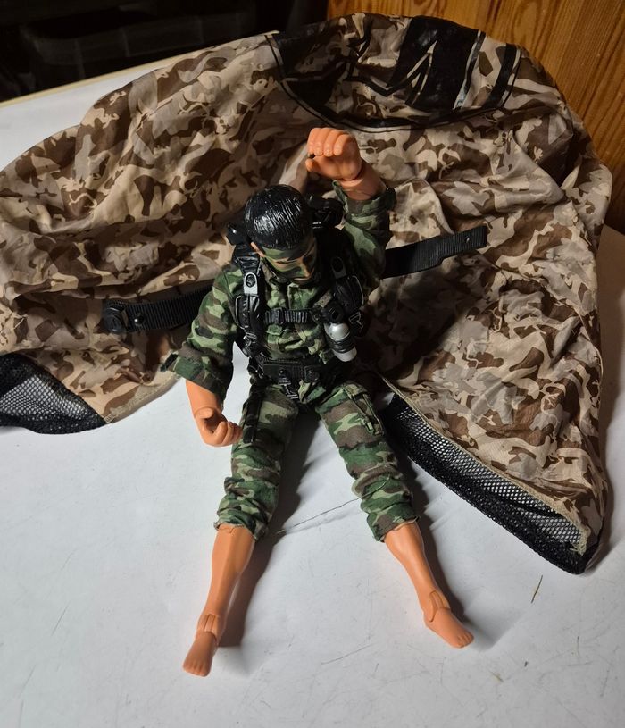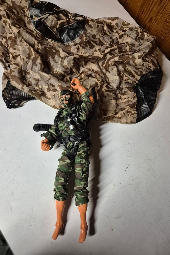 Figurine Action man vintage Militaire avec un parachute motif camouflage Tres bon état Hasbro #figurine #figurineactionman #actionmanmilitaire #actionmanparachute #actionmanparachutiste