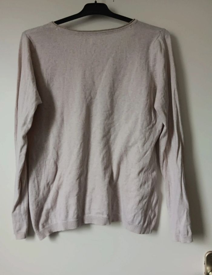 Pull fin col V Beige Pâle / Grège 80% Coton avec détails irisés taille 38 - photo numéro 4