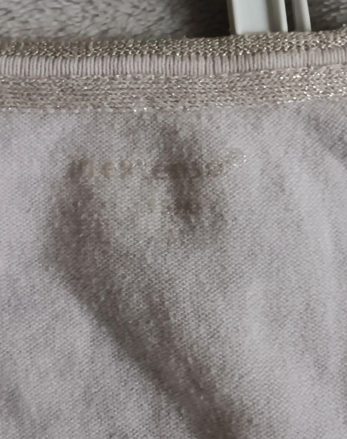 Pull fin col V Beige Pâle / Grège 80% Coton avec détails irisés taille 38 - photo numéro 1