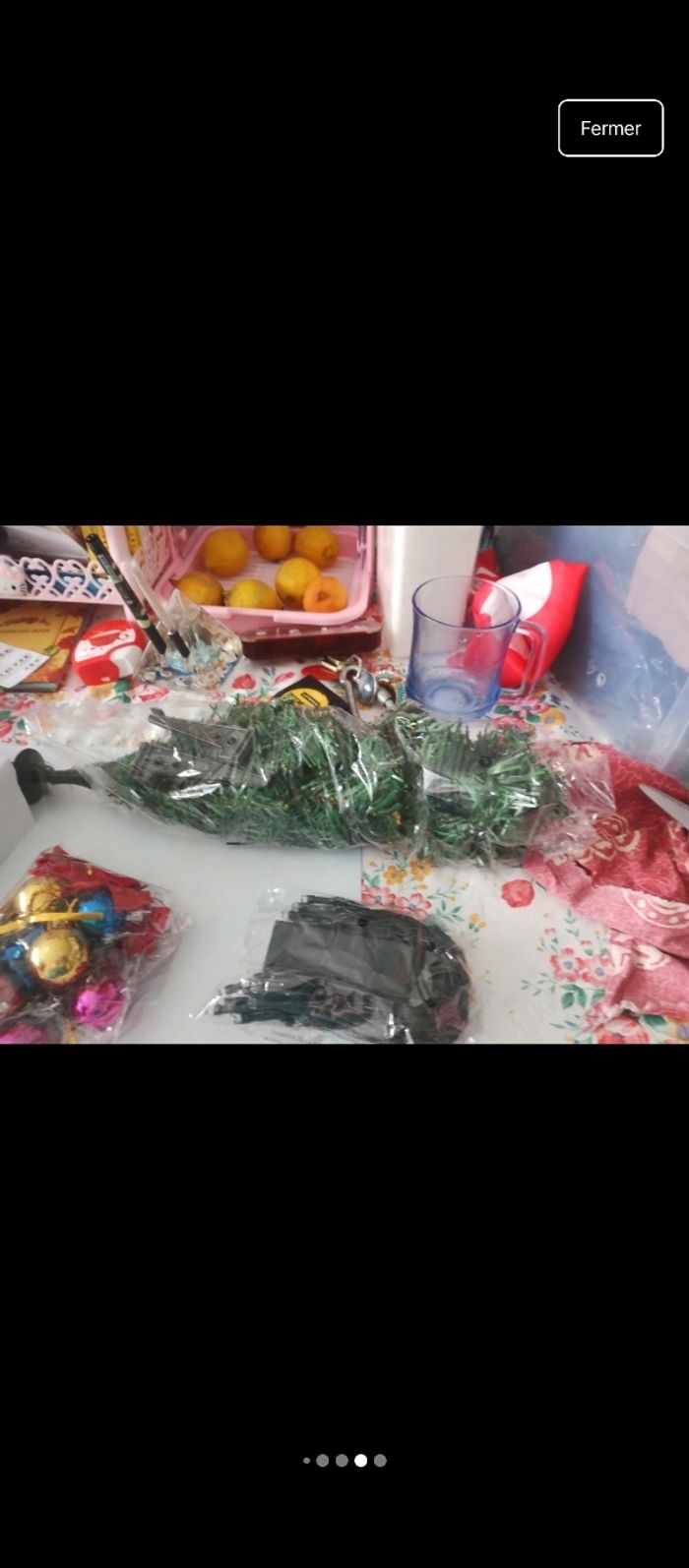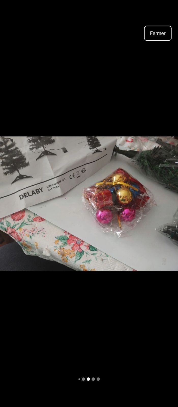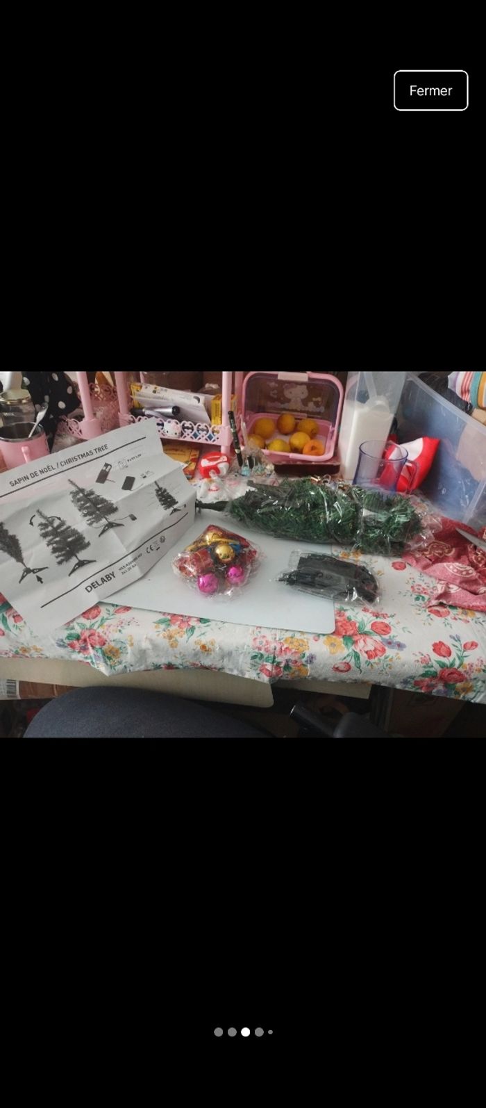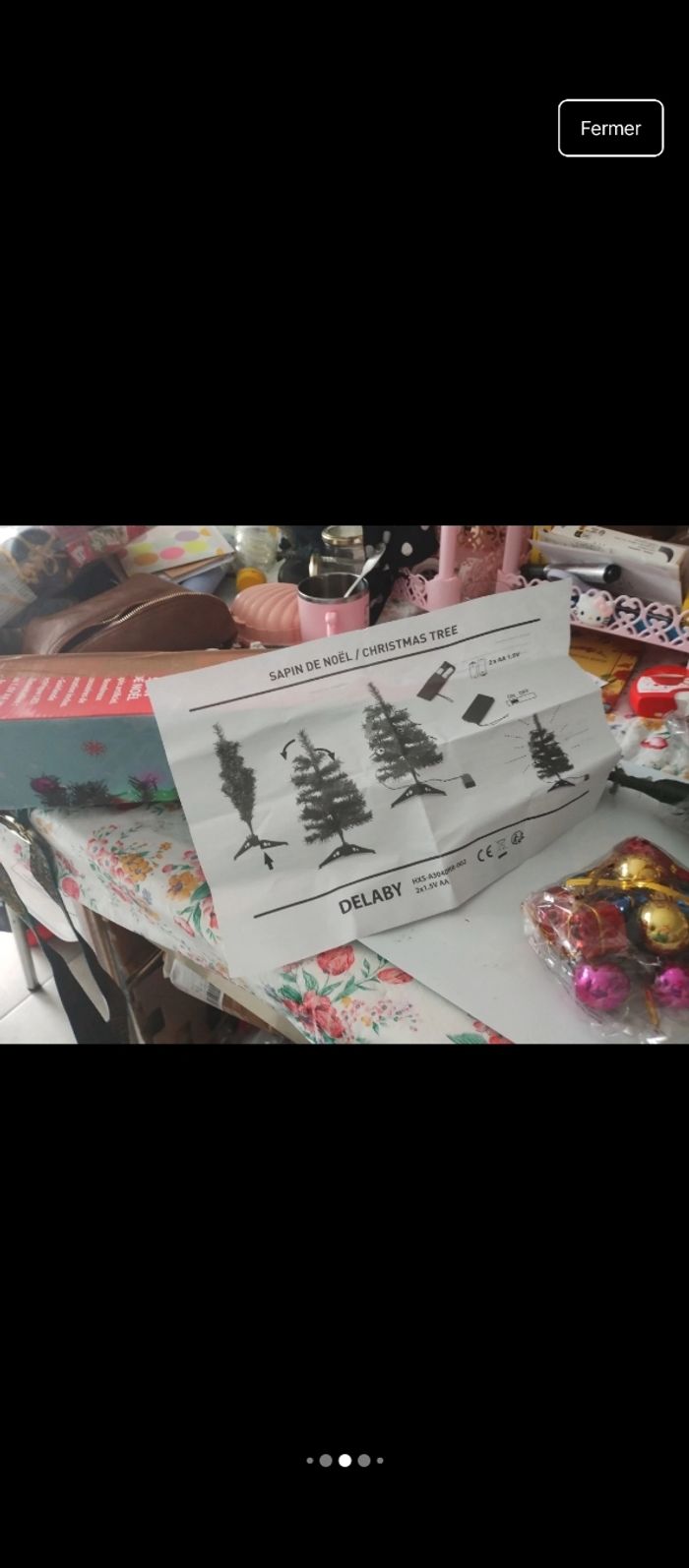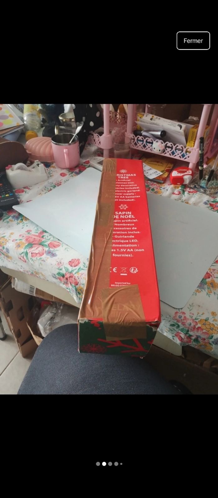 Hauteur 41 cm Boîte abîmé j ai été obligé de la recoller Sapin artificiel Nombreux accessoires décoratifs inclus Guirlande lumineuse led alimentation a piles 1,5 v AA ( non fournie)