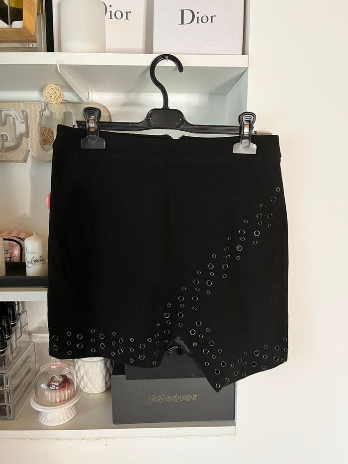 〰️ Mini jupe asymétrique noire avec oeillets argentes