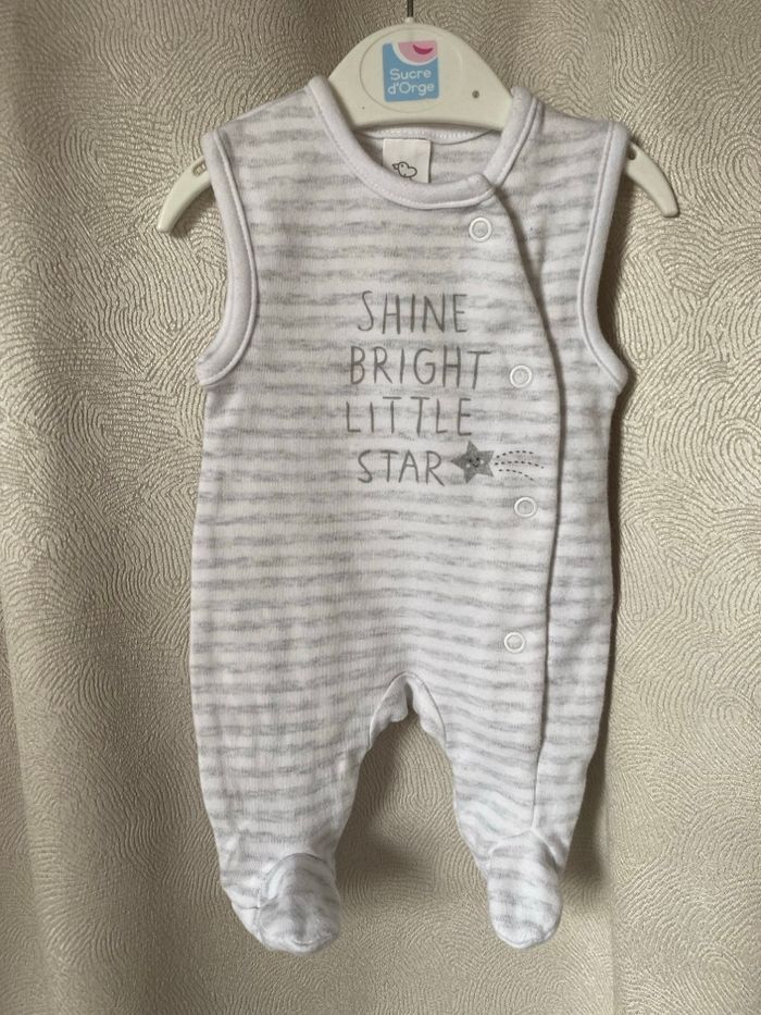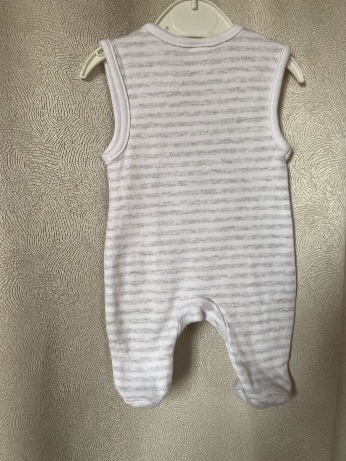 Pyjama grenouillère sans manche Blanc rayé gris Coton Taille Prema 46 cm C&A