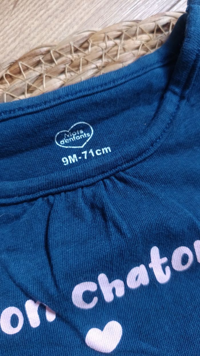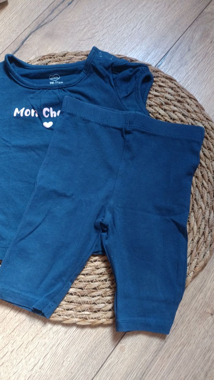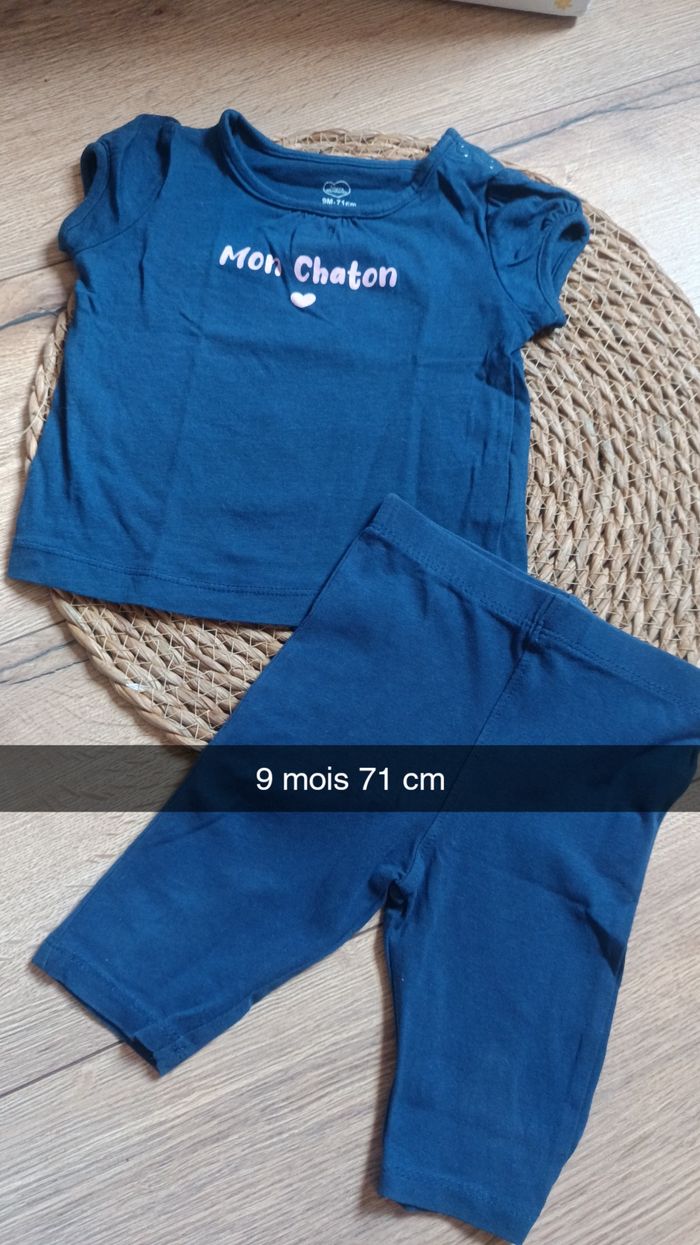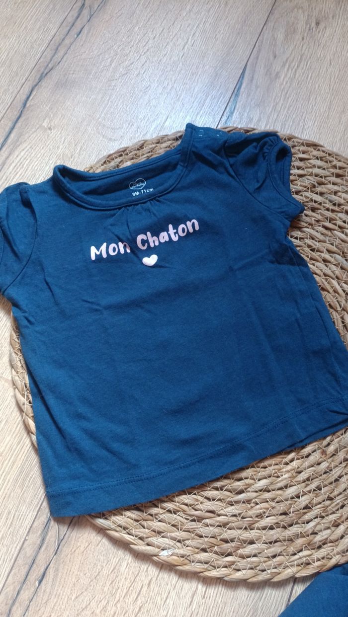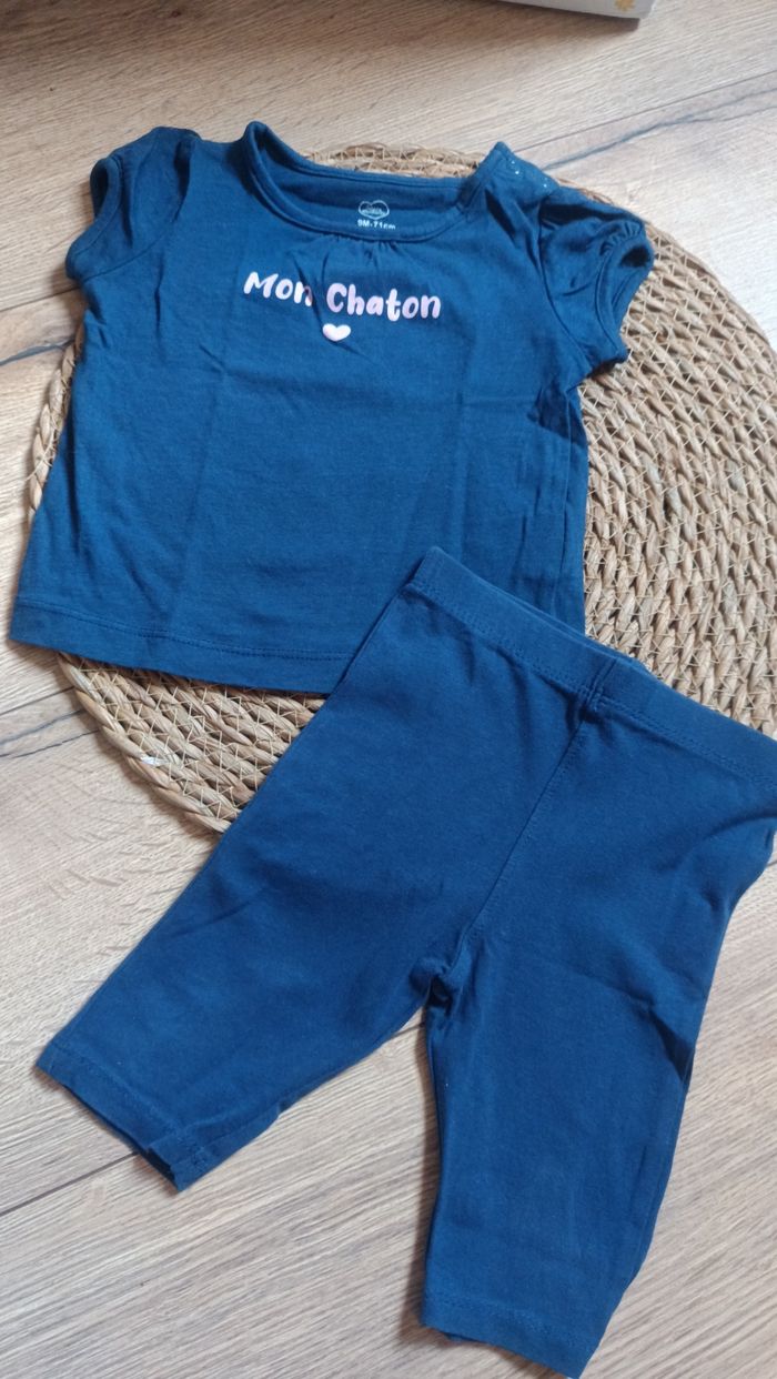 Ensemble t-shirt manche courte legging bleu mon chaton 9 mois