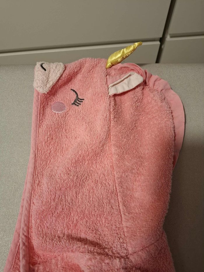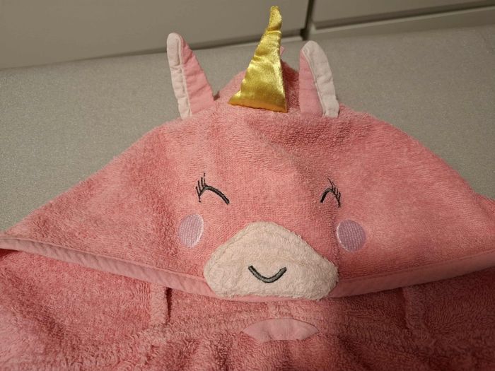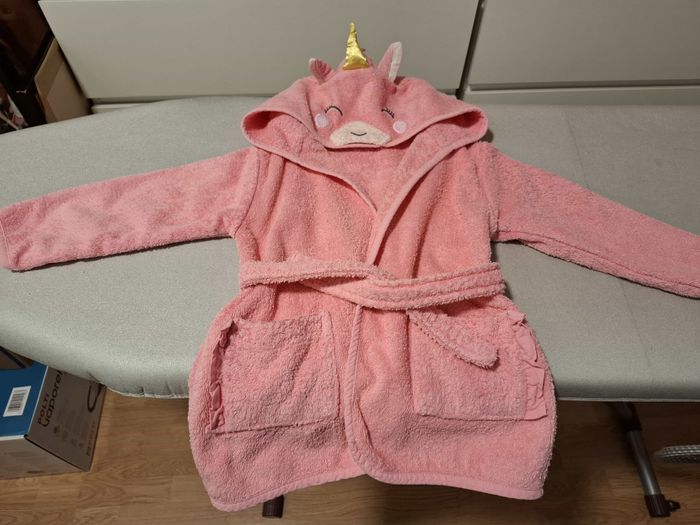 Beau peignoir/sortie de bain pour fille, marque VERTBAUDET, en taille 4 ans, modèle licorne, à capuche, 2 poches sur le devant, ceinture intégrée, taille élastiquée à l'arrière, en 100 % coton, lavable en machine à 40° et en très bon état.