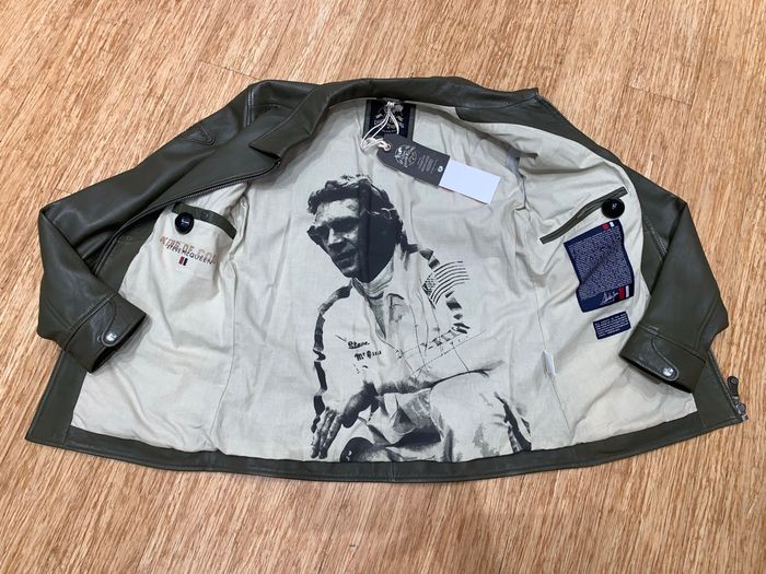 Veste en cuir d’agneau avec tannage végétal de la marque allemande 🇩🇪 Mainpol, série Steve Mc Queen les 24 heures du Mans 1971, 1 poche zippé, 2 poches ouvertes et 3 poches plaquées extérieures, 2 poches intérieurs, neuve avec étiquette, vendue en magasin 569 €