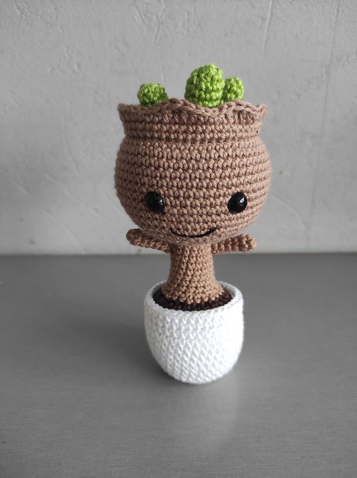 Groot réaliser au crochet dans son pot 🛑 Attention sur commande me contacter avant Cadeau original à offrir ou pour se faire plaisir Tient debout 100% coton Hauteur 13 cm Neuf