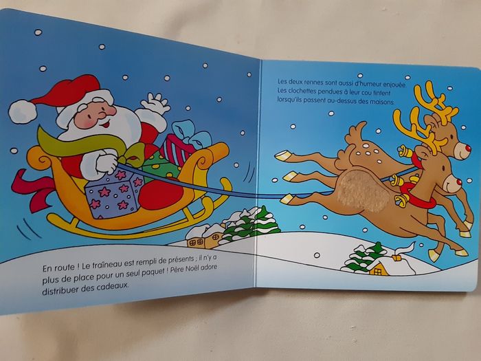 La venue du Père Noël est toujours attendue avec impatience par tous les enfants. Mais ce qui rend ce livre vraiment spécial, c'est que certains éléments dans les dessins peuvent être touchés. Aucun enfant ne pourra résister à caresser les rennes du Père Noël ni même à tirer sur sa longue barbe blanche !