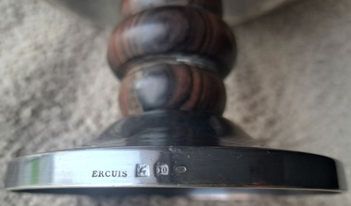 🍽 Ancienne coupe sur pied Ercuis en métal argenté et bois - photo numéro 4