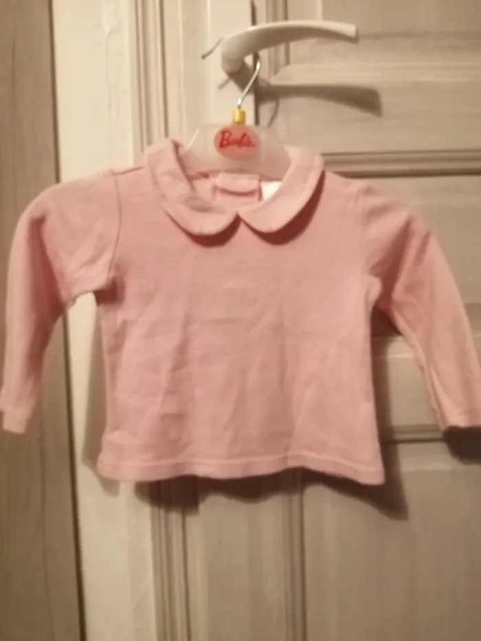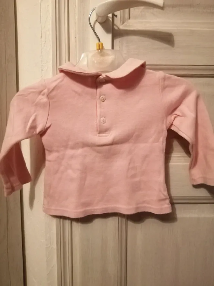 Haut bébé fille Manches longues Col chemise. 3 petits boutons à l'arrière