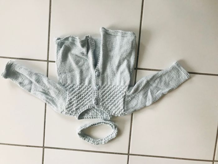 - 1 Veste vert pâle fait main 9-12mois + accessoire cheveux excellent état
