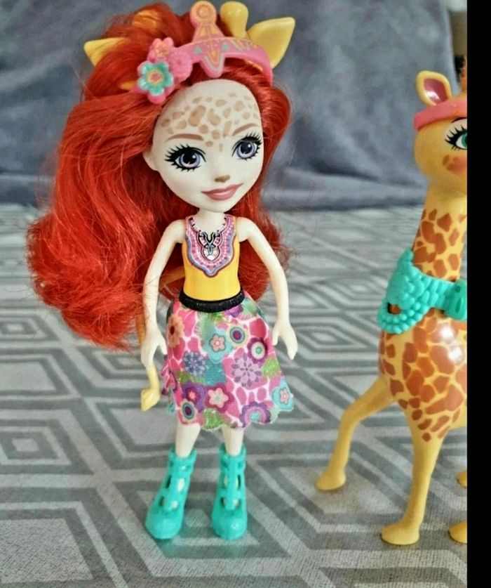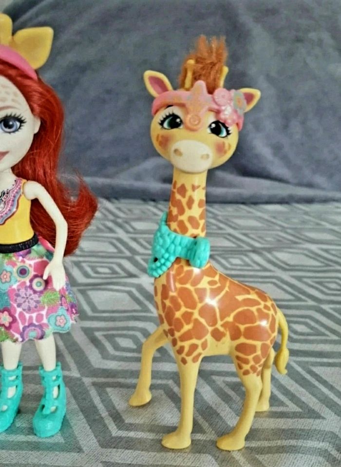 Enchantimals balade au zoo. Poupée Gillian Girafe et Powl. Poupee articulée. Tres bon état.