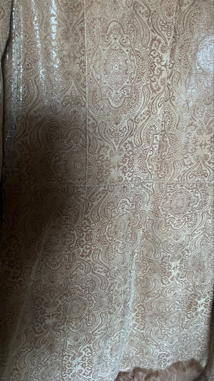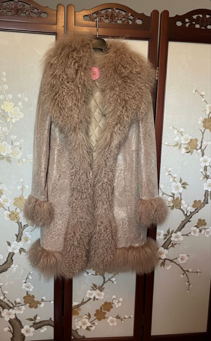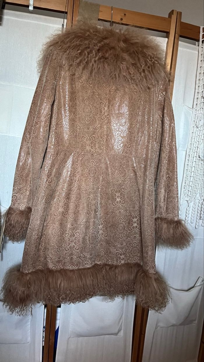 Je vends cette veste psychédélique années 70, tendance en cuir marron clair motifs bohème, laine d’agneau de Mongolie et cuir motifs paillet boteh cachemire En très bon état taille plutôt comme un 38 ou 40 Mesures : -Épaule à épaule 42 cm -Aisselles à aisselles 52 cm -Longueur 98 cm fourrure comprise Bras 65 cm fourrure comprise -ferme avec 4 accroches, 3 grandes poches Pièce Vintage Magnifique 🤩 Envoi rapide