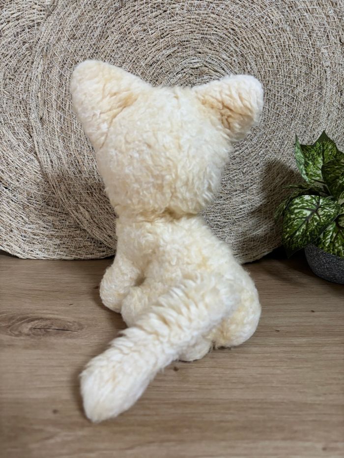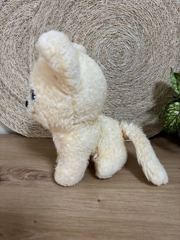 Vintage ancienne peluche chien beige écru yeux bleus assis - photo numéro 5