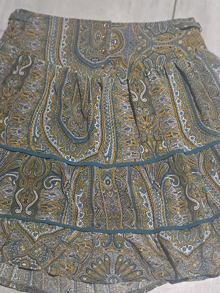 Jupe à volant bleu jaune Breal Taille 38