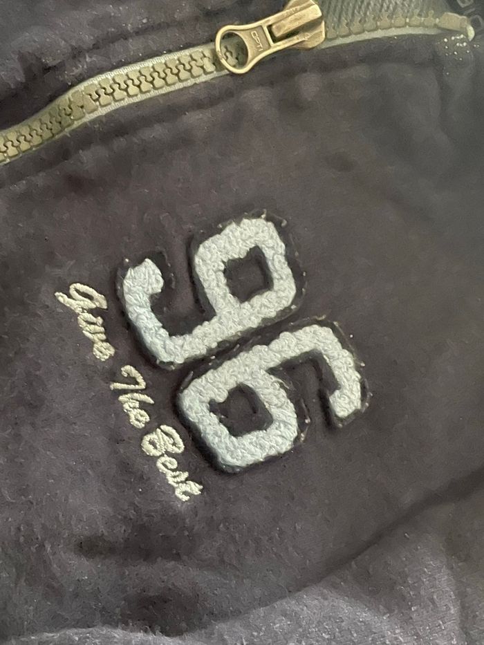 Gilet zippé avec capuche et poches, motif décoratif “96 – Give The Best”.