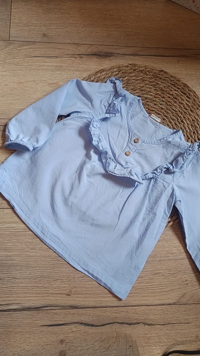 Blouse H&M bleu ciel manche longue 86 cm