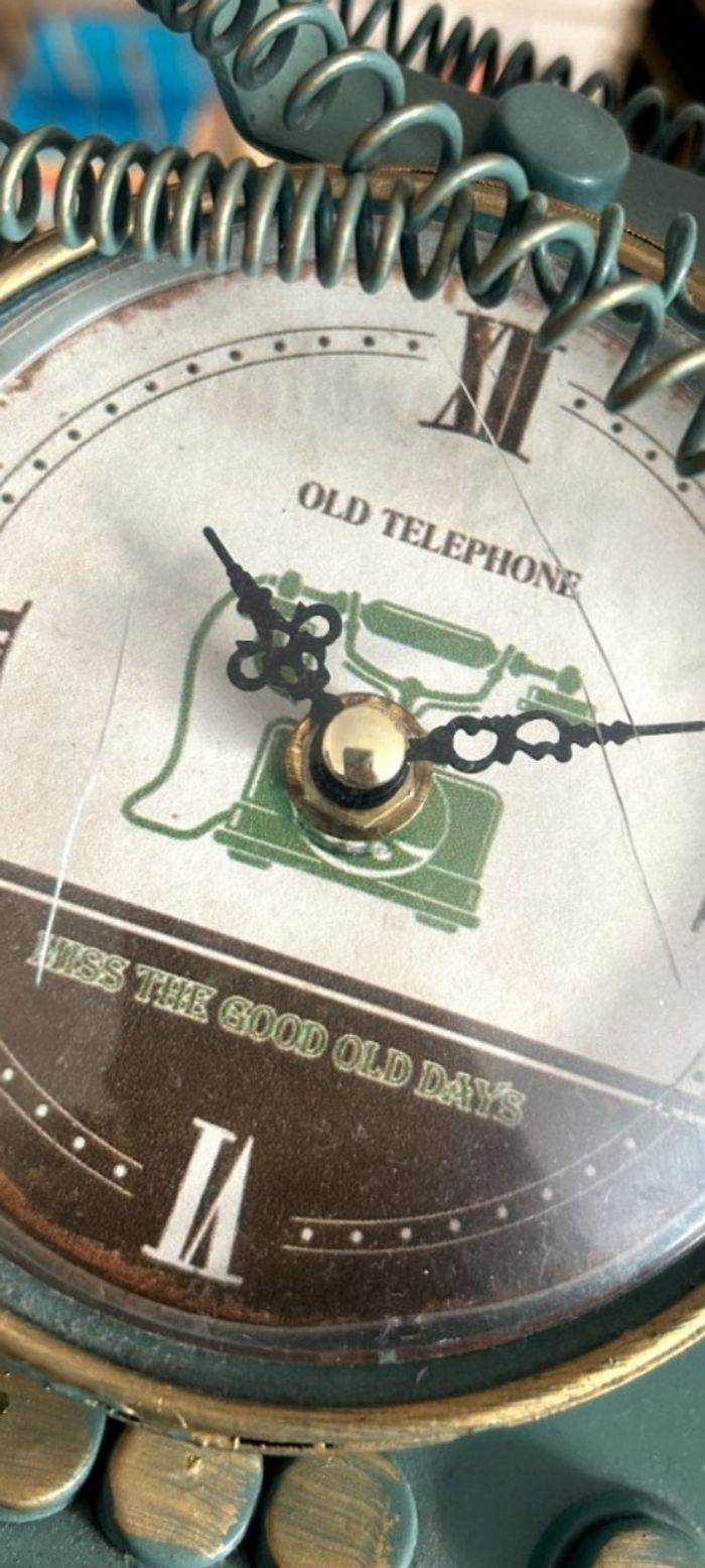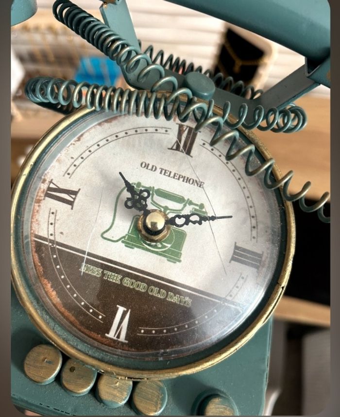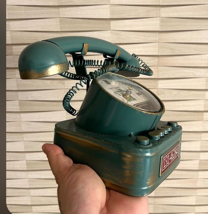 téléphone horloge style vintage de couleur verte avec un design unique et rétro. - Type de produit : Téléphone horloge decoratif - Couleur : Vert - téléphone factice - Bon état , 3 rayures sur le cadran 30€