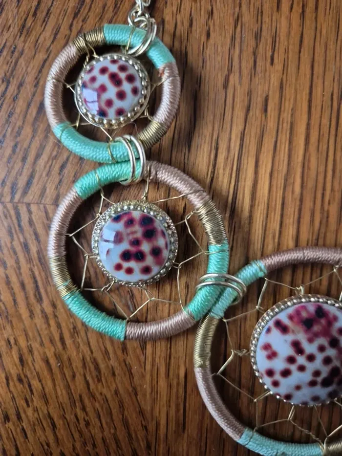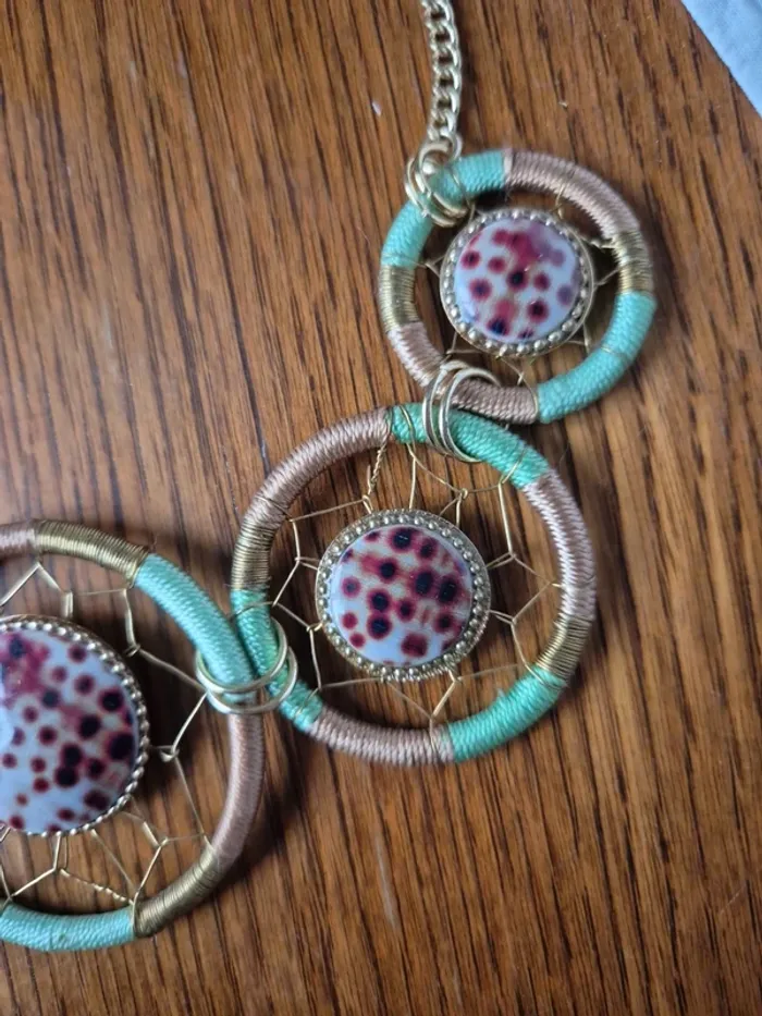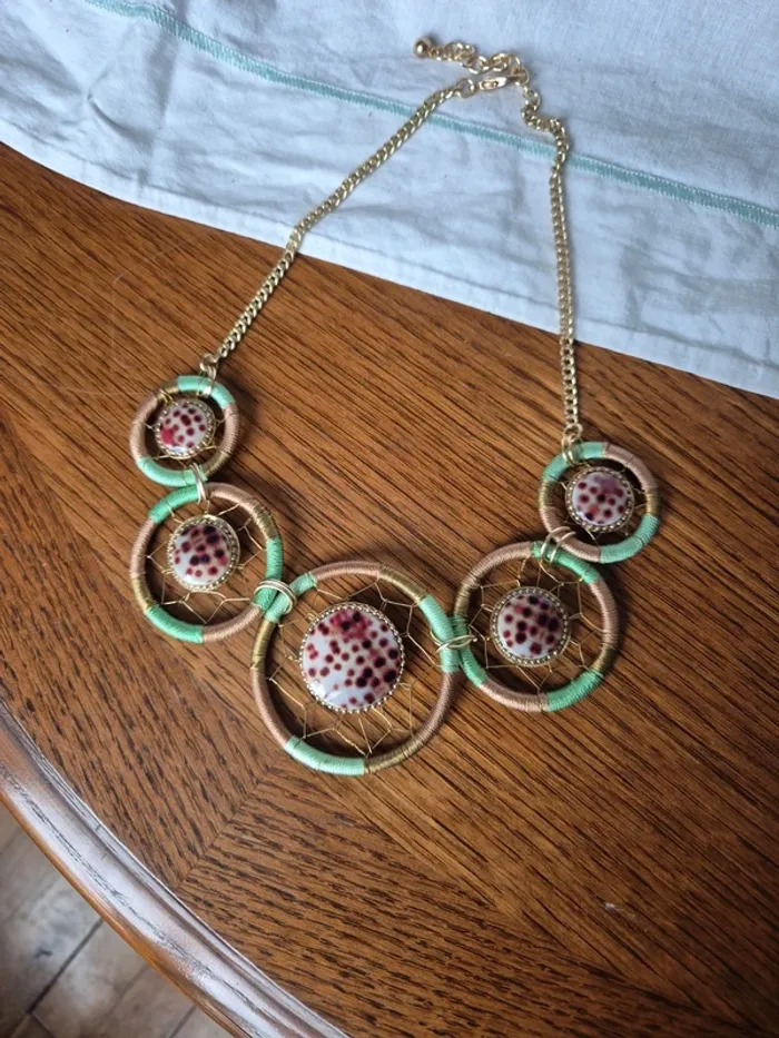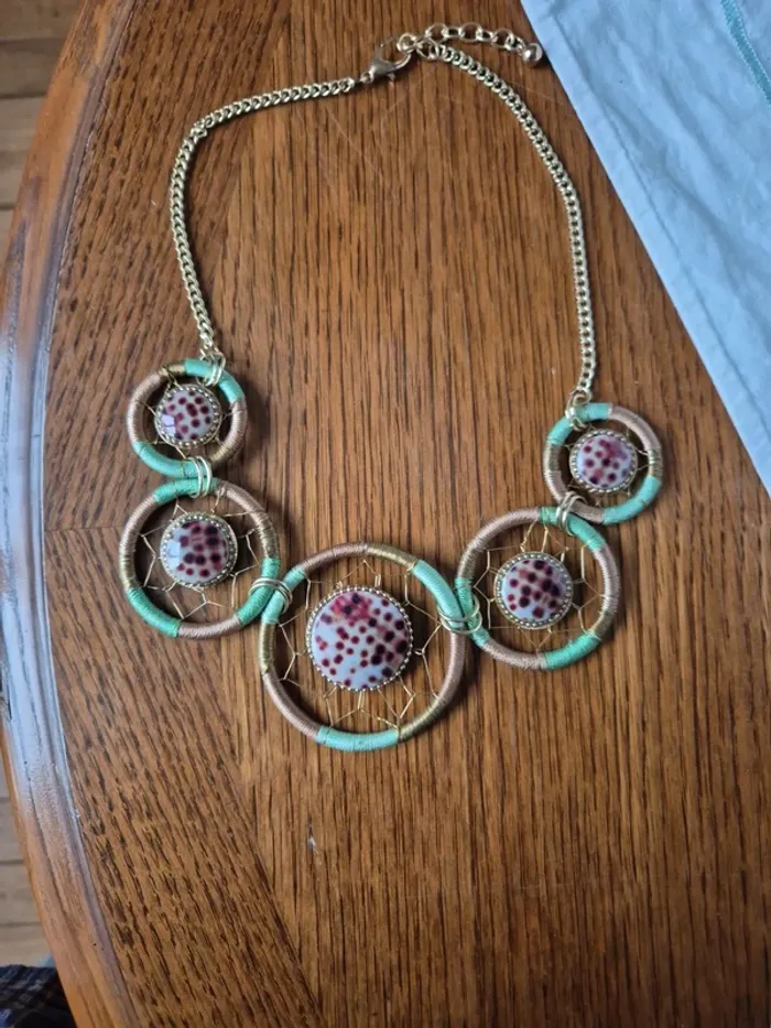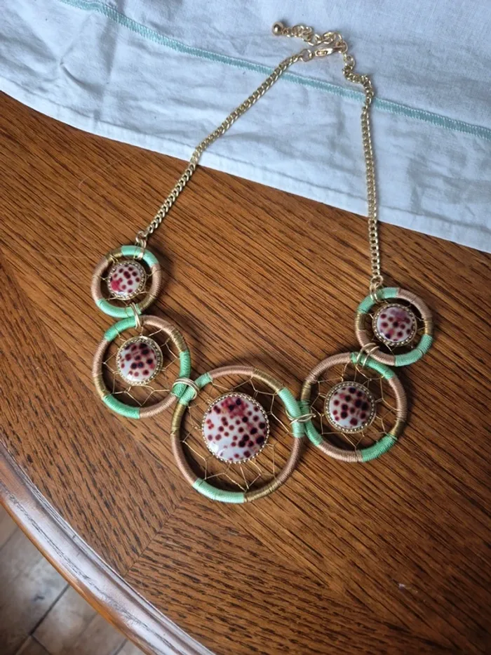 ➡️mes autres annonces de bijoux et accessoires👉 #cg89bijoux un joli collier ras de cou, il est composé de 5 anneaux, dans les tons verts. en très bon état #bijoux #collier #rasdecou #accessoire N'hésitez pas à demander des informations ou des photos supplémentaires. Je peux avoir oublié de précisé certains détails. remise en main propre et envoi possible acheter en lot ! Economisez sur les frais de port