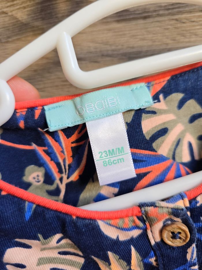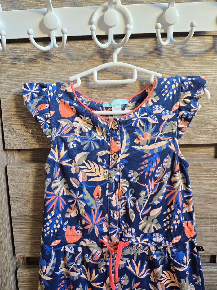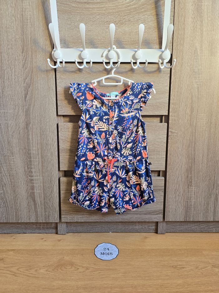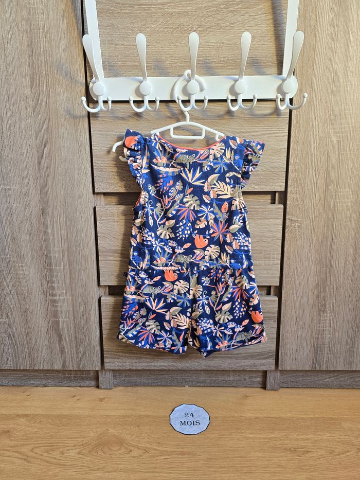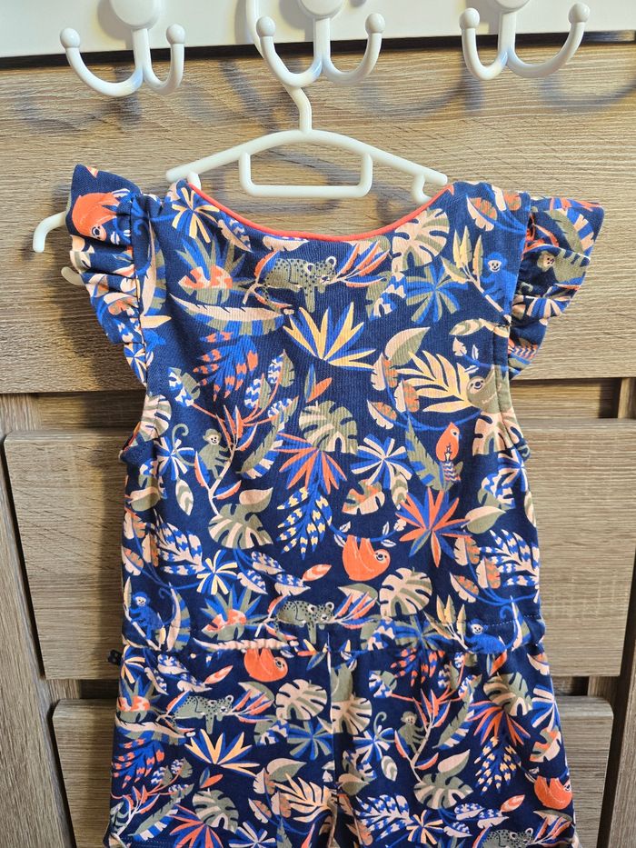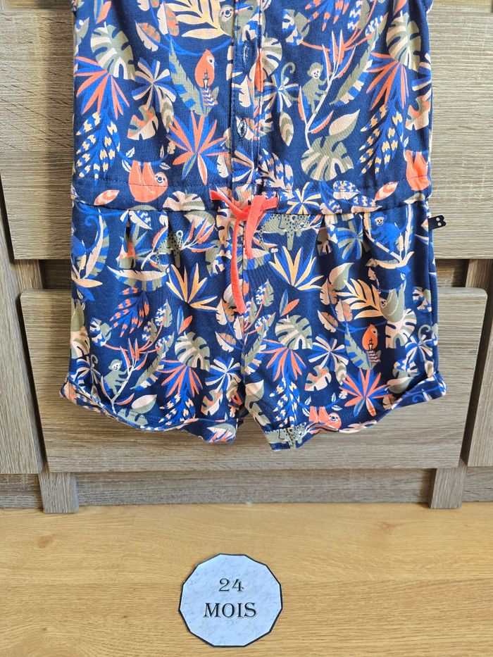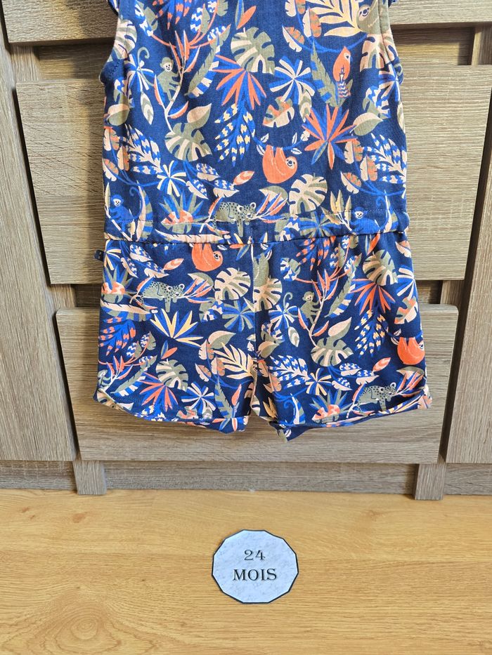 📜 Combinaison short/ barboteuse bleu marine motif très coloré et tropical avec des animaux (paresseux, singe...)