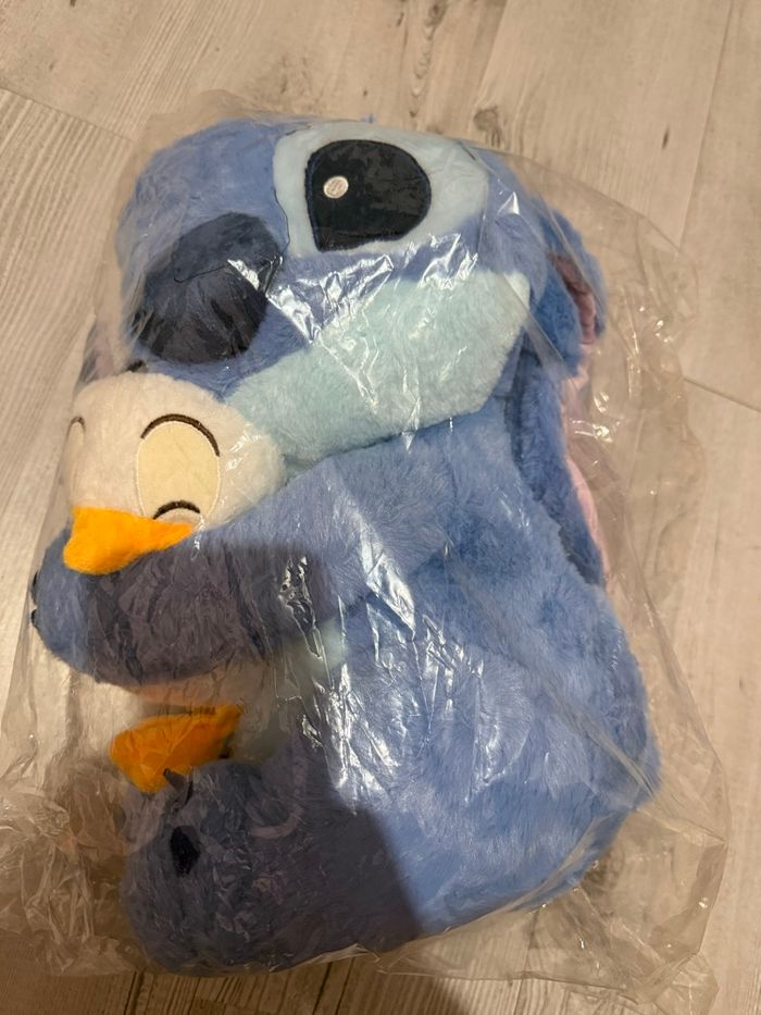 Hauteur 45cm Avec son clin d’œil attendrissant, cette peluche Stitch avec son doudou canard incarne la tendresse à l’état pur. Douce, attachante et disponible en plusieurs tailles, elle séduit petits et grands dès le premier regard. Un cadeau irrésistible à offrir ou à s’offrir !
