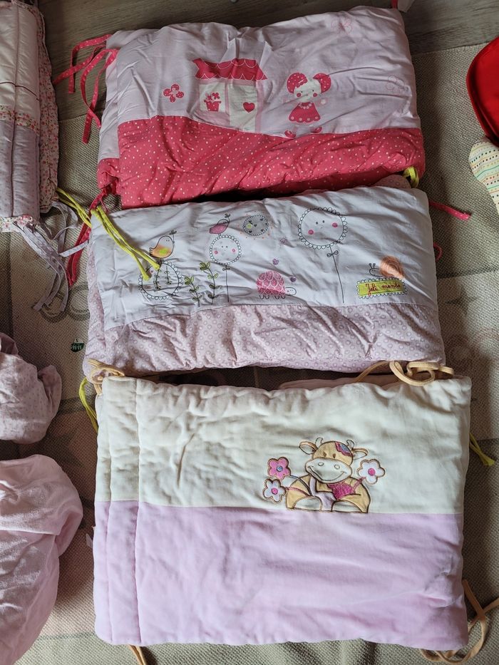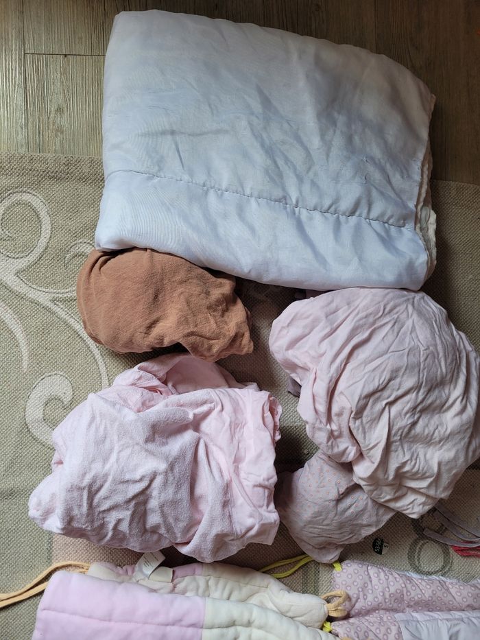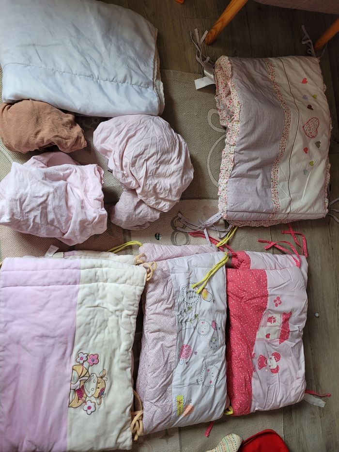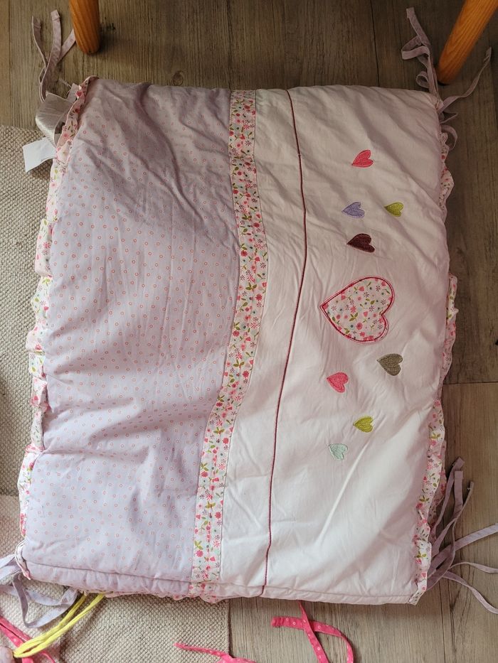 Différents tours de lit, une alèse et deux draps housse ,une couette