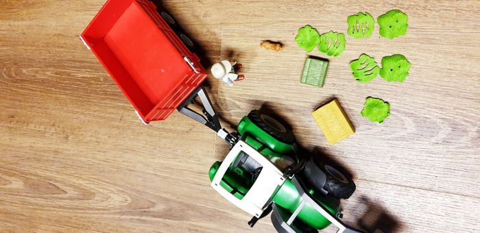 Avec différents types de véhicules : camion, grue, voiture, bateau, moto, vélo, charrette, diligence, quad, avion, hélicoptère, tracteur, pelleteuse, camion poubelle, bus.