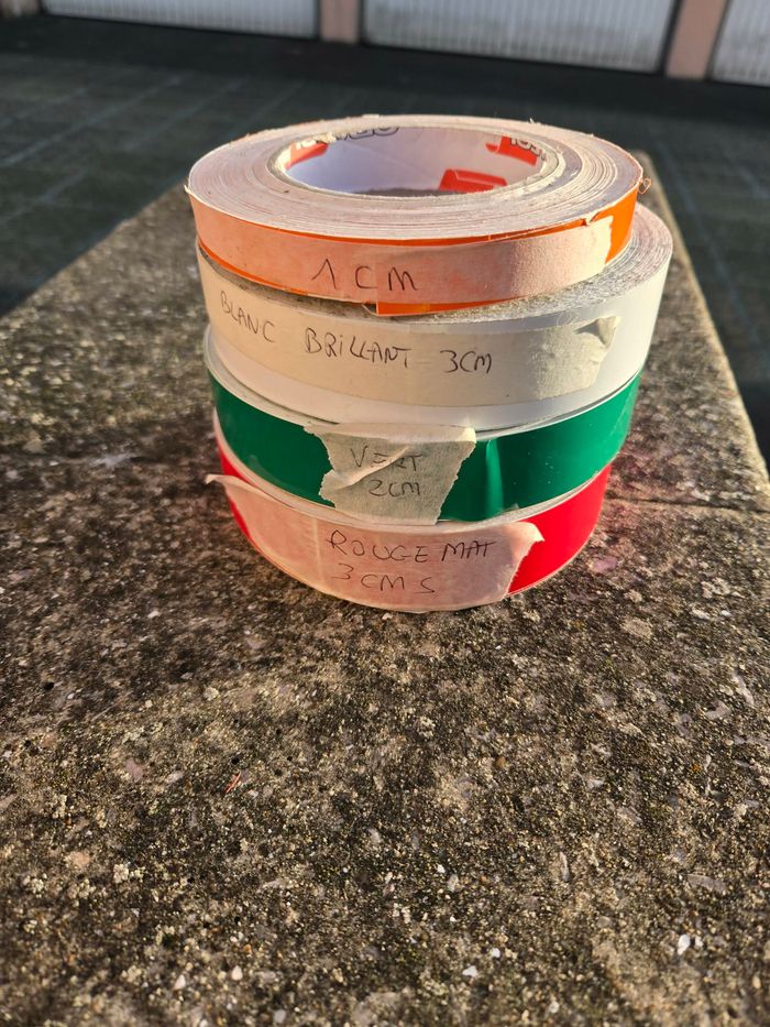 Je mets en vente 1 lot de 4 vinyles permanent orange, blanc, vert foncé et rouge de Marque Oracal (de très belle qualité)