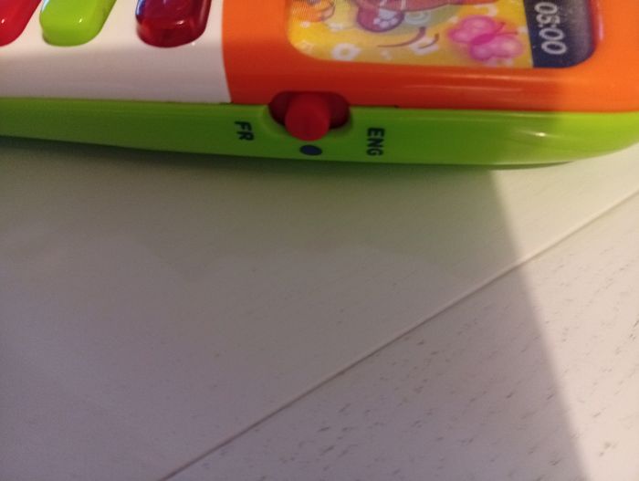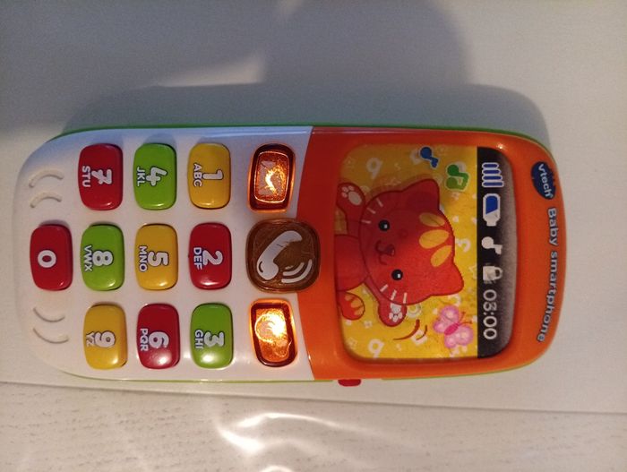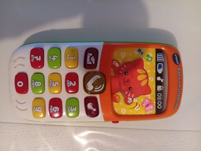 Smartphone Bilingue stimule l'éveil des tout-petits dès 6 mois grâce à son design interactif. Ce jouet électronique initie les enfants au français et à l'anglais à travers des mélodies entraînantes, des phrases amusantes et des lumières colorées qui captivent leur attention. Le dessin sur les grandes touches est un peux effacer voir photos reste fonctionnel .