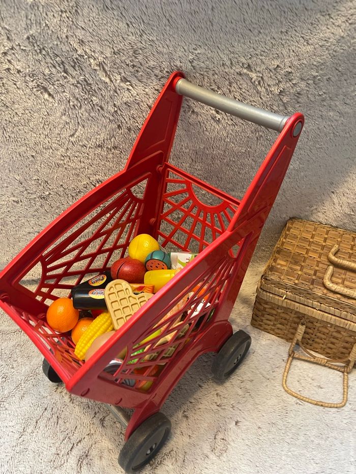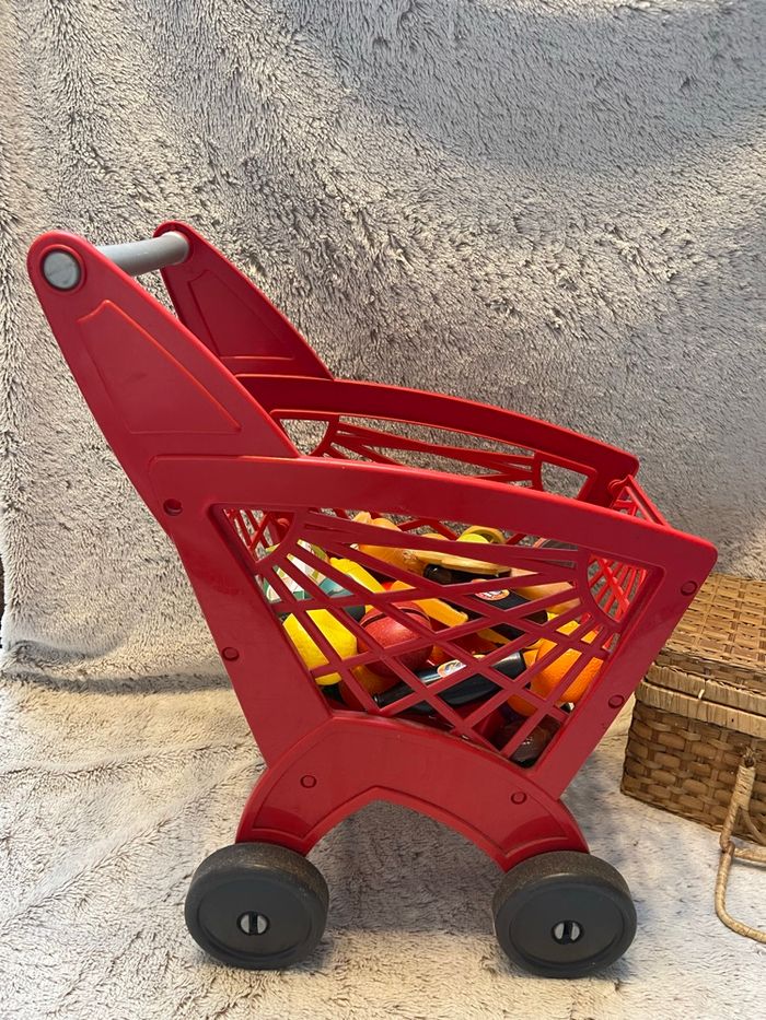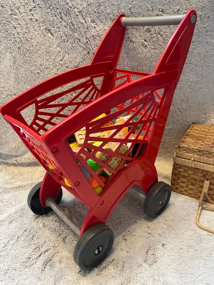 Chariot supermarché avec une vingtaine d’ aliments Très bonne état Mes filles ont adorée jouer a faire comme les adultes. À partir de 18 mois Ecoiffier