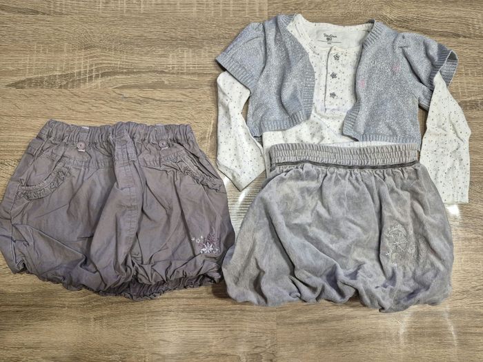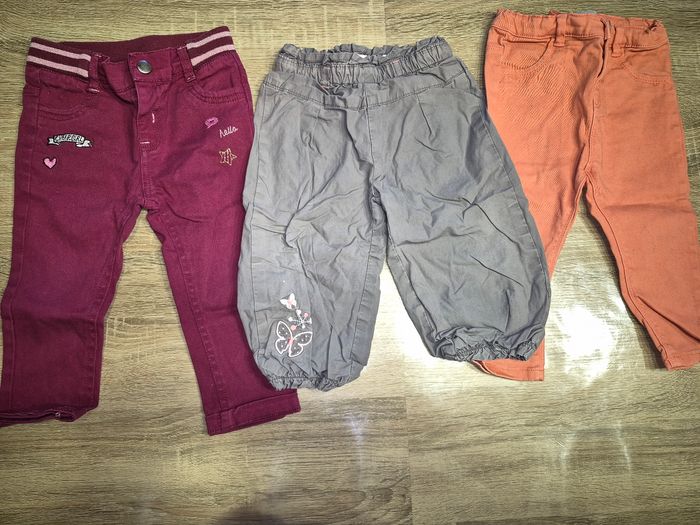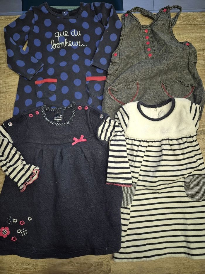 lot de 19 vêtements hiver pour fille en 18 mois -4 robes (3 manches longues+ 1 style salopette) marque petit bateau, aborba, terre de marins) TBE voir Neuf -3 pulls kiabi/C&A(BE) +1 gilet cache coeur (mes petits cailloux) TBE -3 pantalons TBE (Obaïbi, Tissaia et Gémo) -2 leggings TBE + 1 legging jean BE -un ensemble 3 pièces TBE marque Bébé Rève -1 jupe boule Gémo -1 t shirt ML bleu marine marque 3 pommes TBE -1 t shirt ML col roulé ROSE, marque Pat et Ripaton, TBE -1 t shirt ML Little Marcel BE (le flocage du lettrage a disparu)