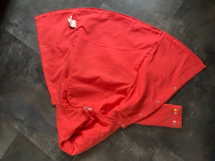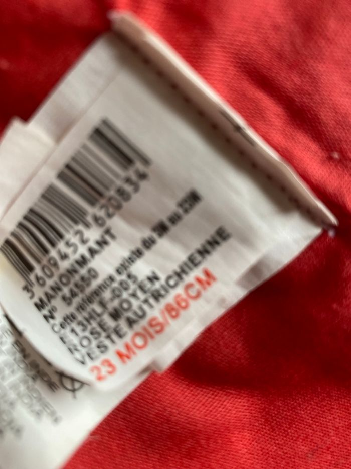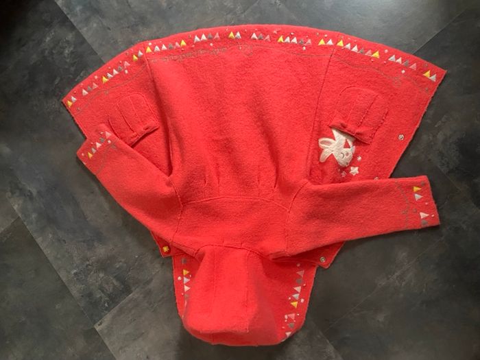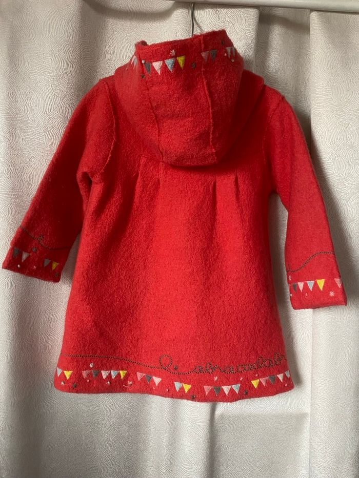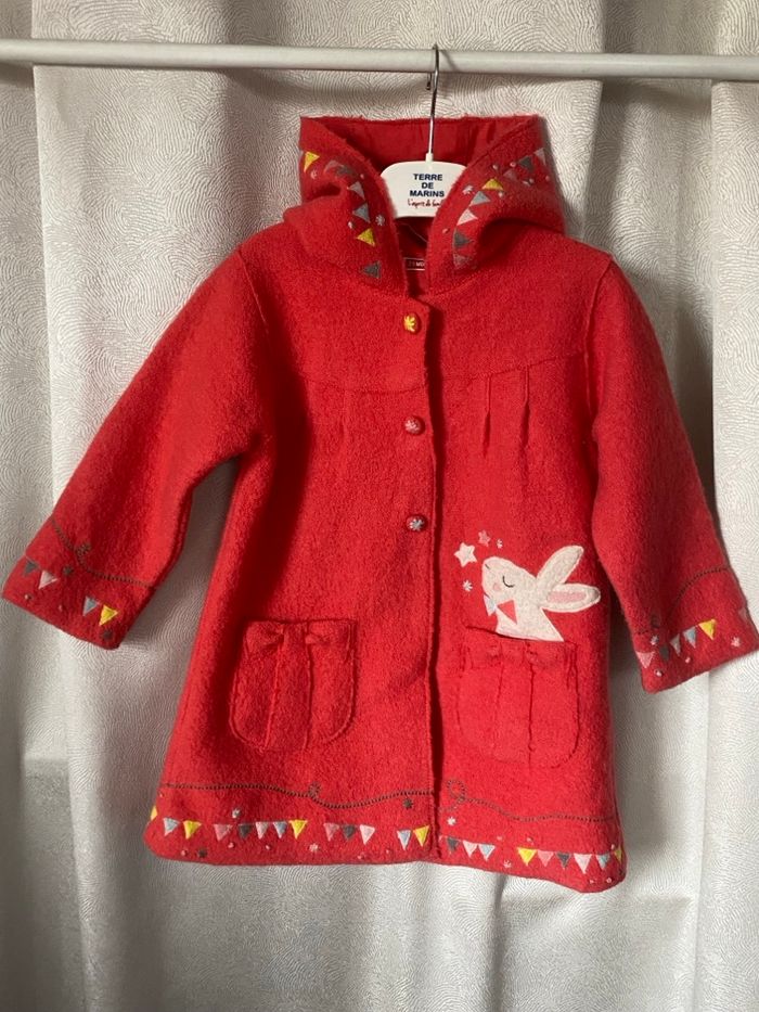 Manteau à capuche en parfait état , proche du neuf. rose bonbon avec broderie multicolore 100% laine Taille 2 ans 86 cm DPAM