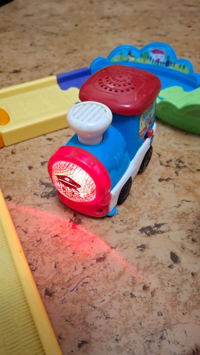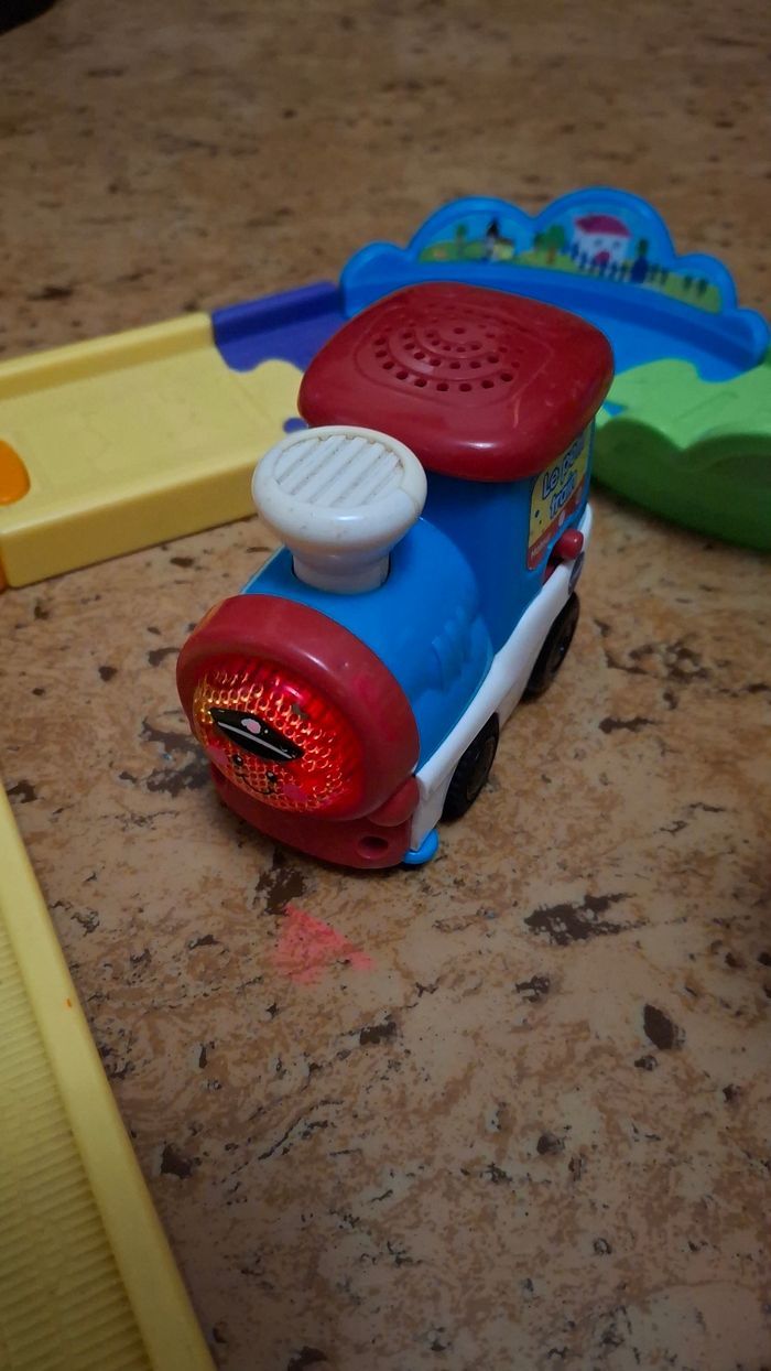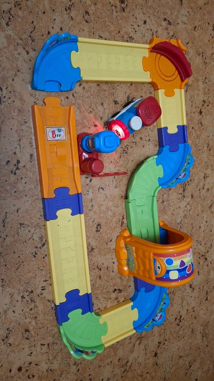 Circuit Tut Tut bolide Manque 1 petite pièce Vendu avec 1 petit train qui fonctionne parfaitement (piles non fournies) Quelques petites traces mais en très bon état