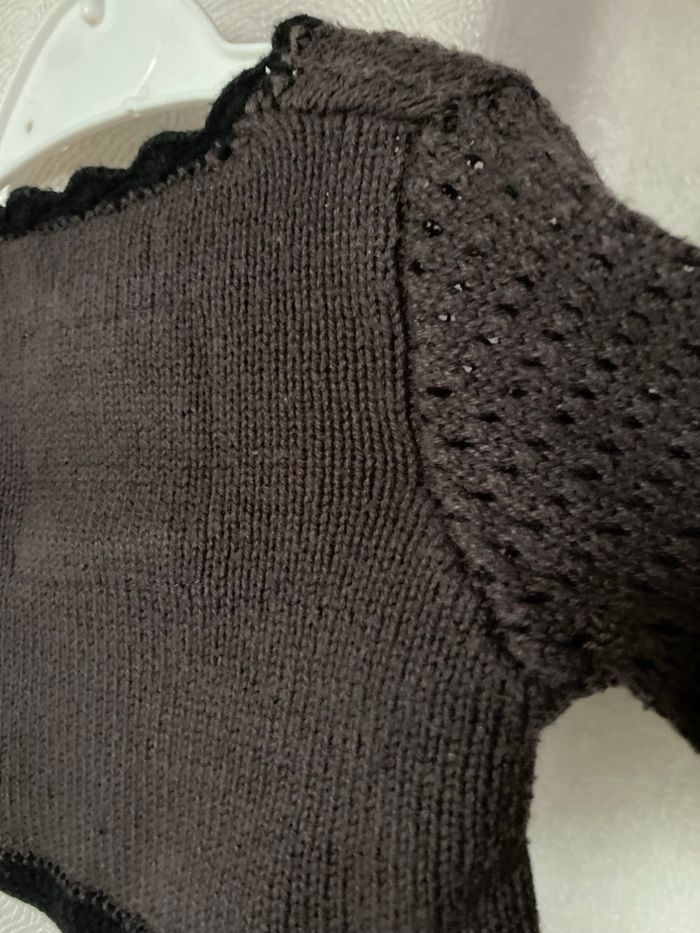 Gilet boléro tricot Gris anthracite et noir Taille 3 mois 60 cm 60% coton 40% acrylique Marque IKKS Idéal pour mettre sur une petite robe