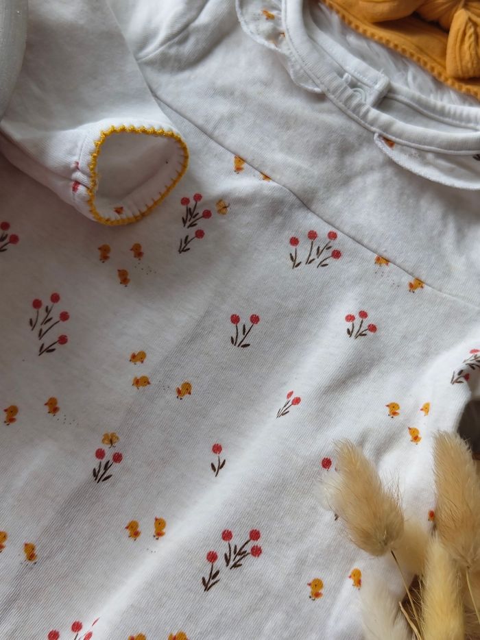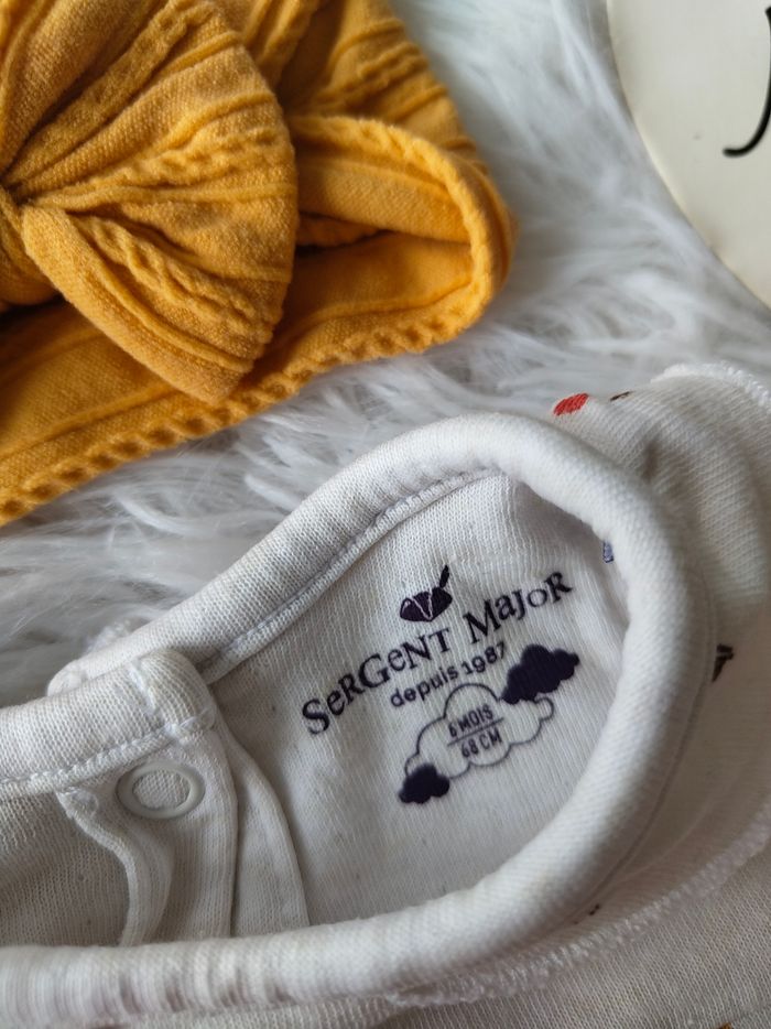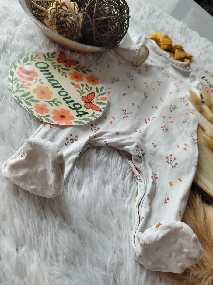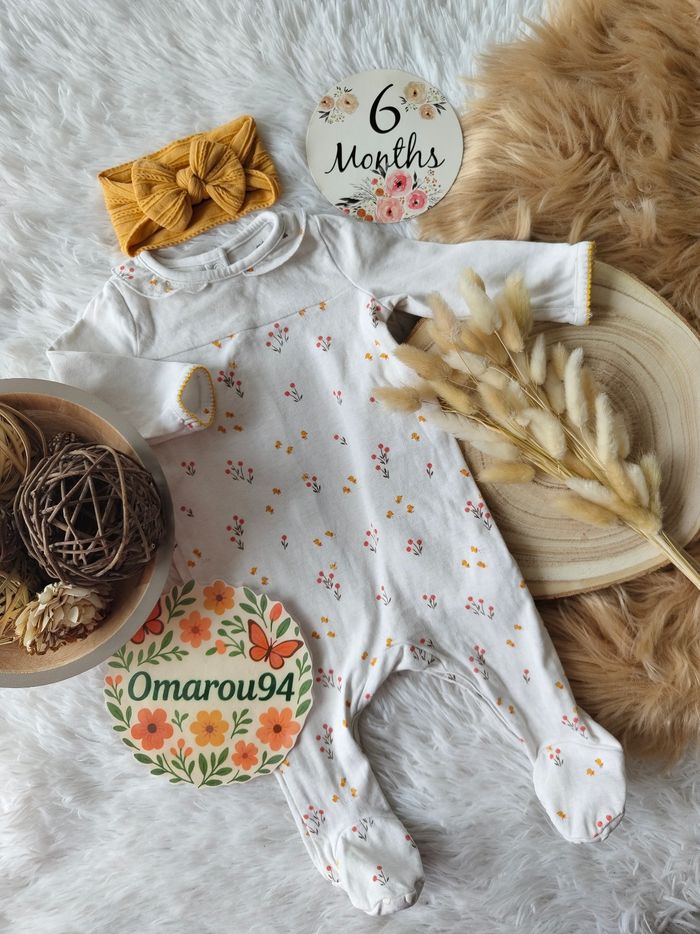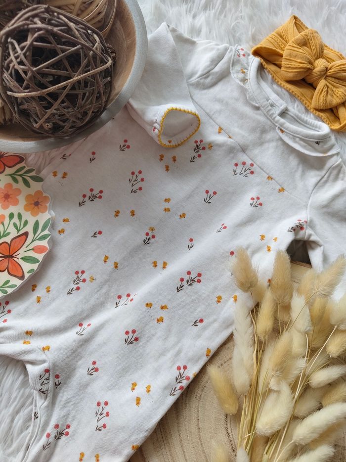 Grenouillère imprimé fleuri et bandeau cheveux sergent major fille 6 mois 🎀