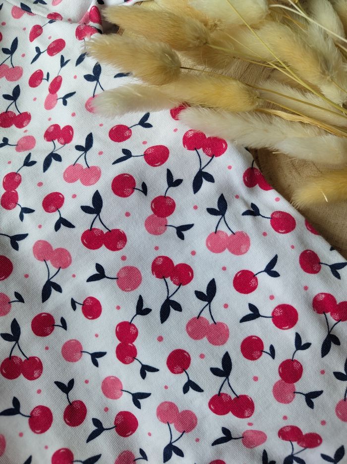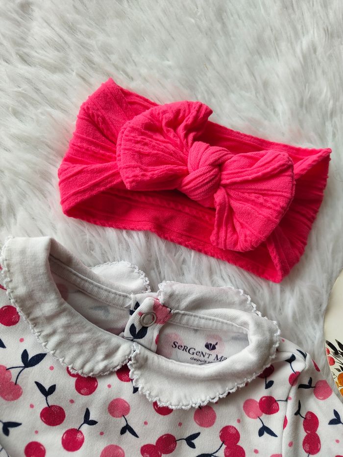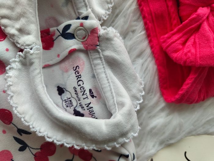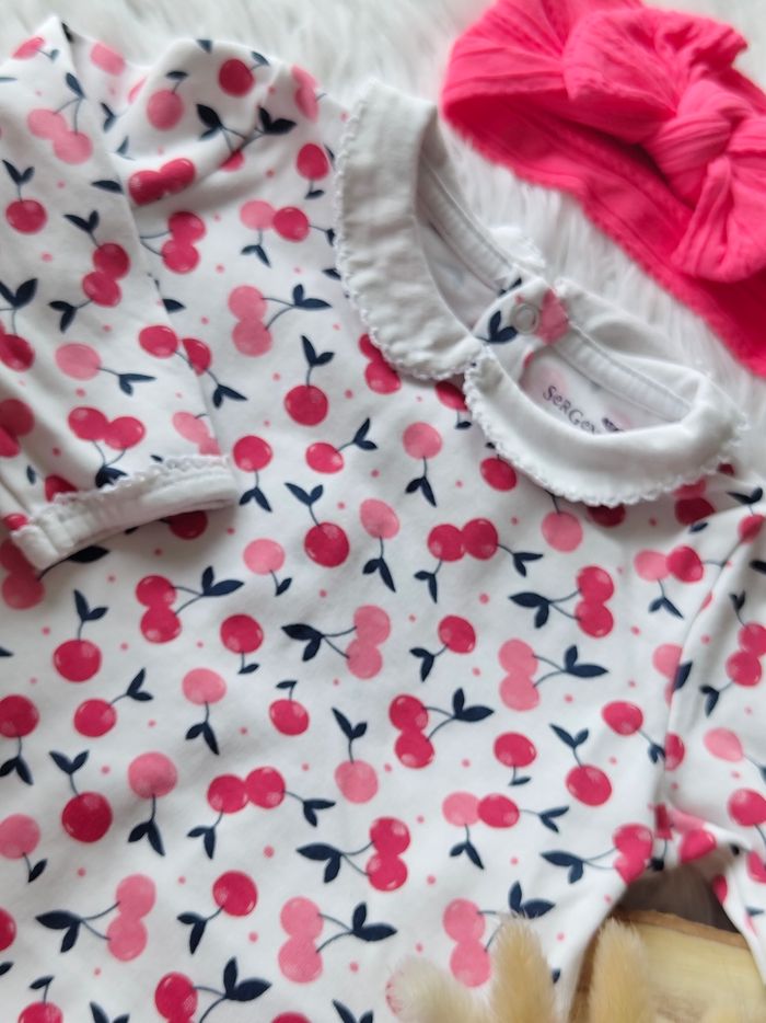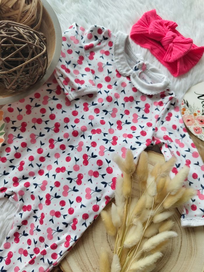 Grenouillère imprimé cerise 🍒 et bandeau cheveux sergent major fille 6 mois 🎀